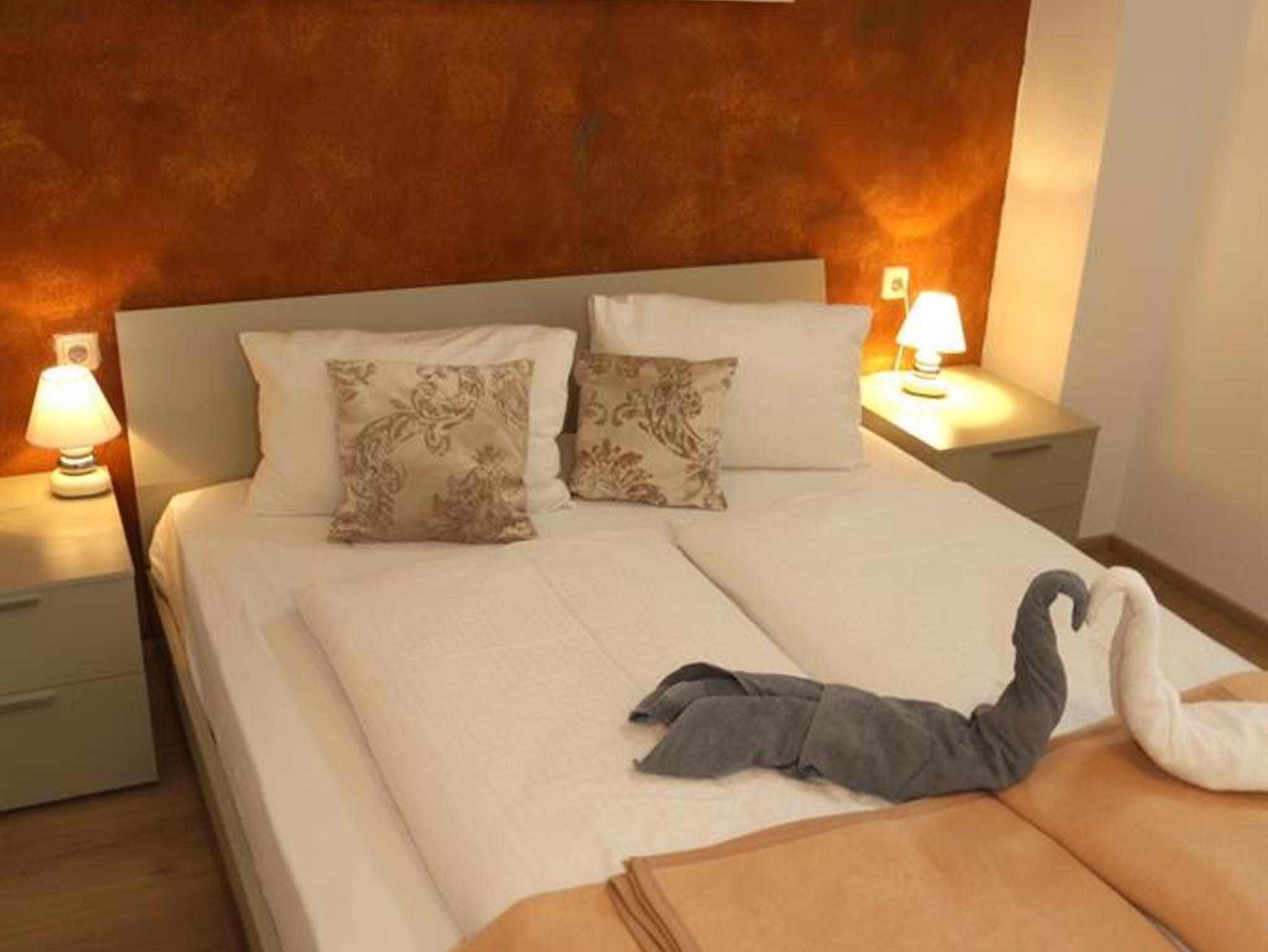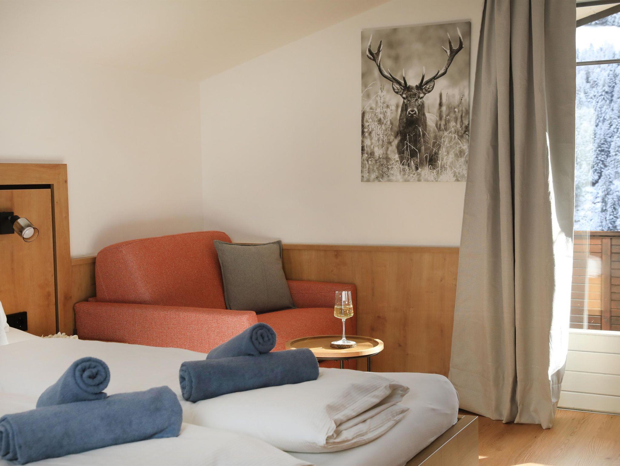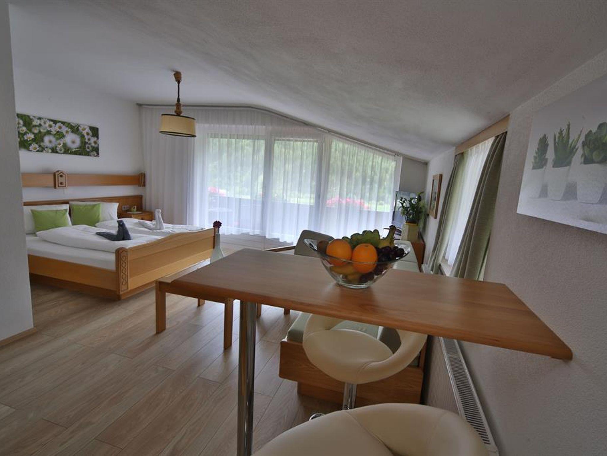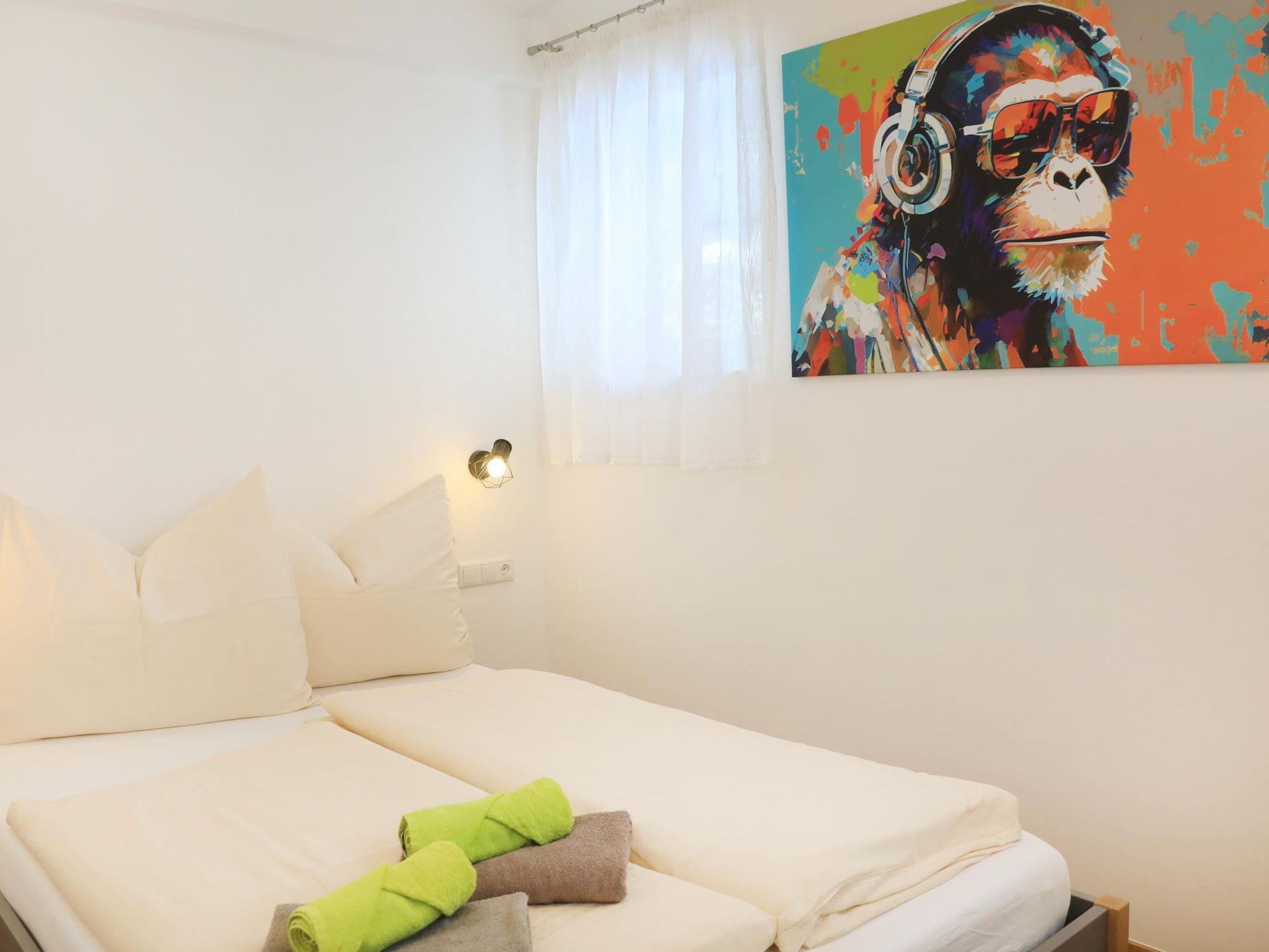 Das helle, freundliche Studio bietet Ihnen eine kleine Kochnische, ein Doppelbett, eine Couch mit Couchtisch, eine kleine Theke mit zwei Hockern, ein Badezimmer und einen großen Balkon. Das Studio Maxi ist für 2-3 Personen geeignet.