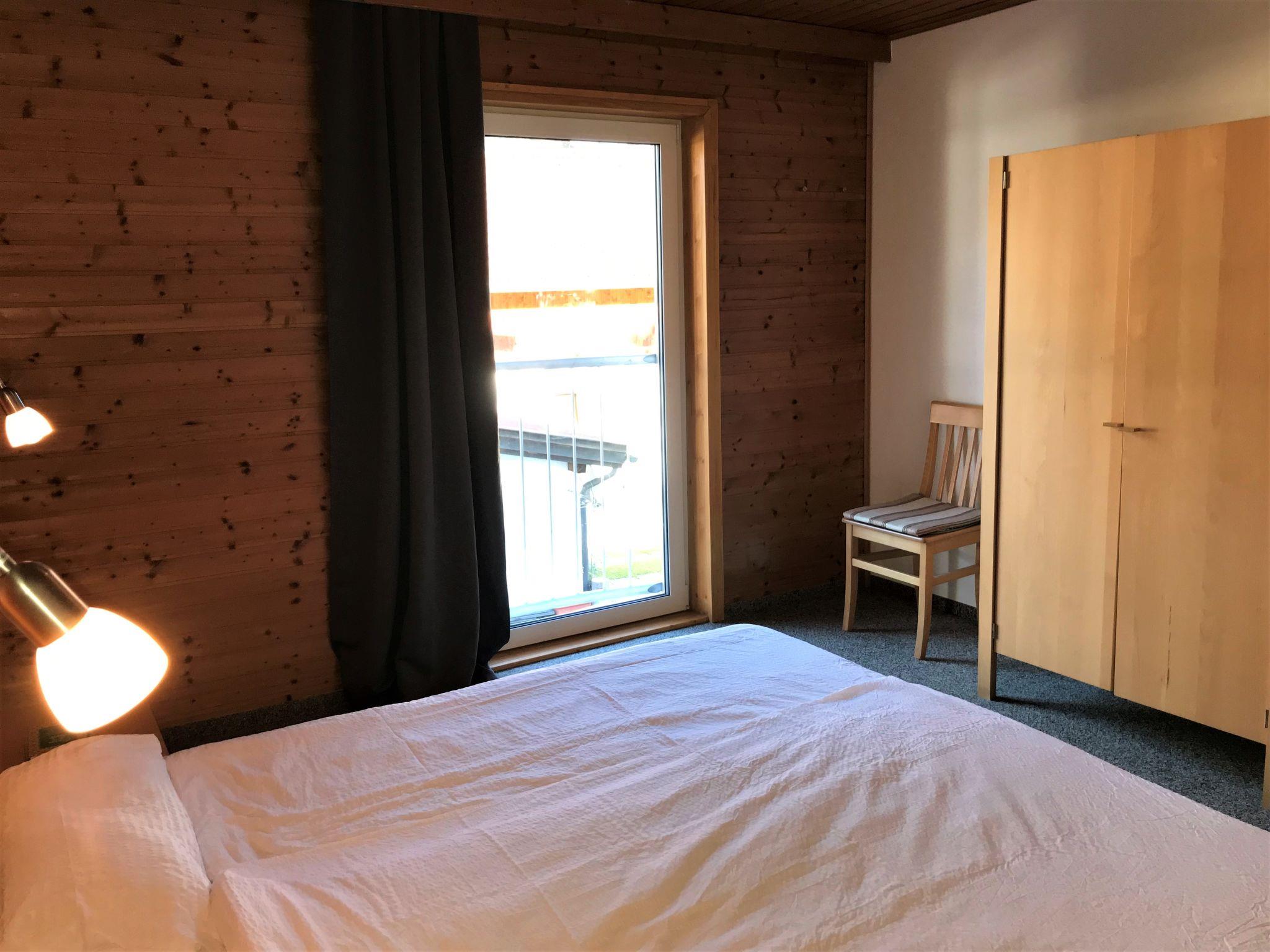 "Hochunnutz", 3-room apartment 54 m2 on 1st floor. Spacious and bright, wooden furniture furnishings: 2 double bedrooms. Kitchen-/living room (oven, dishwasher, 4 ceramic glass hob hotplates, kettle, electric coffee machine) with dining nook and satellite TV (flat screen). Bath/WC. Heating. Carpet. Beautiful view of the mountains and the countryside. Facilities: Internet (WiFi, free). Parking (roofed, 1 car). Please note: non-smokers only. A shared balcony (west orientation) with balcony furniture can be reached via the floor corridor.