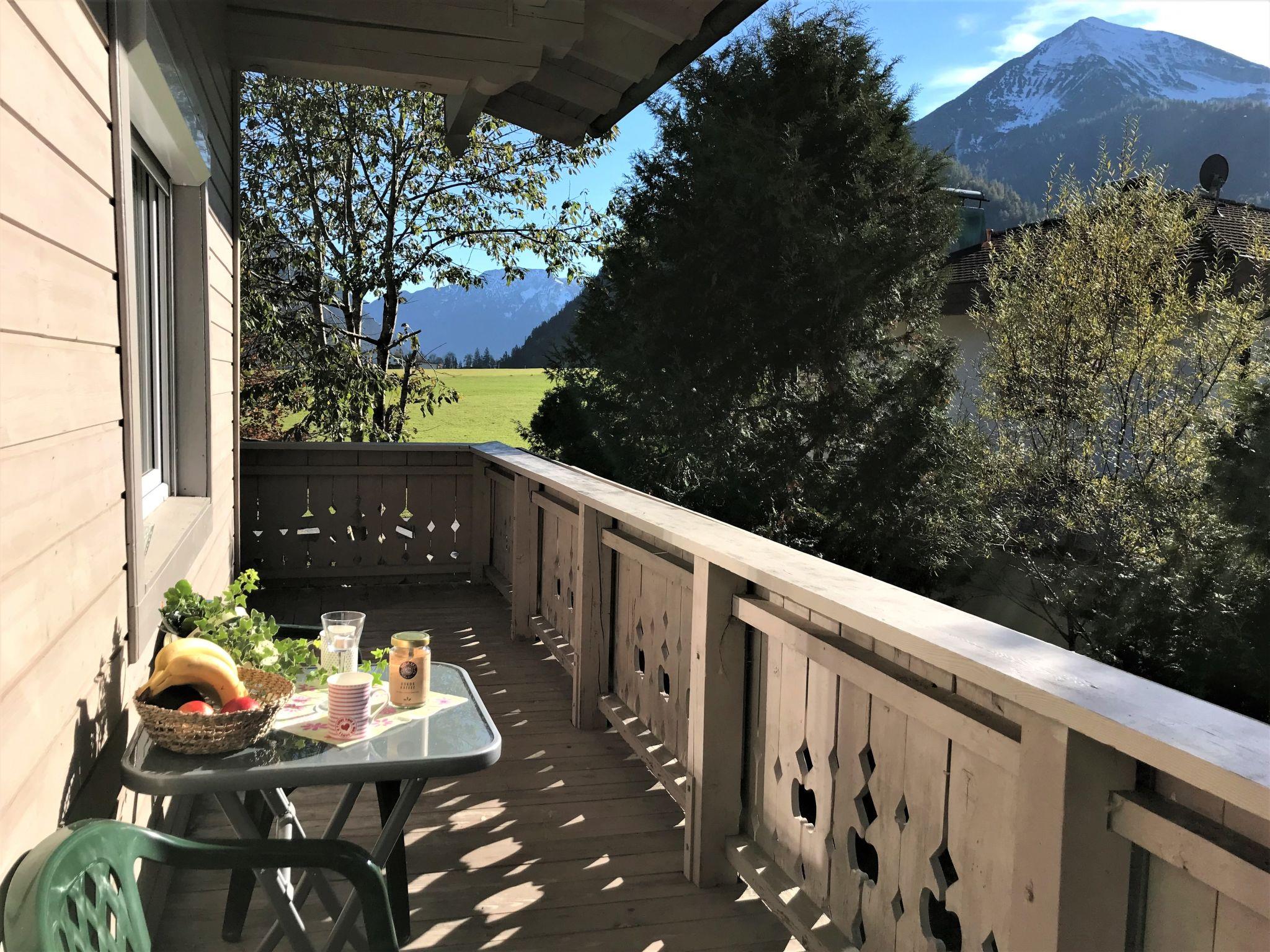 "Christlum", 2-room apartment 51 m2, on the top floor. Partly with sloping ceilings, wooden furniture furnishings: living/sleeping room with 1 sofabed (140 cm), dining table and satellite TV (flat screen). 1 room with 1 bed and 1 double bed. Open kitchen (oven, dishwasher, 4 ceramic glass hob hotplates, kettle, electric coffee machine). Bathroom, sep. WC. Heating. Carpet. Beautiful view of the mountains and the countryside. Facilities: Internet (WiFi, free). Parking (roofed, 1 car). Please note: non-smokers only. A shared balcony (west orientation) with balcony furniture on the first floor can be reached via the floor corridor.
