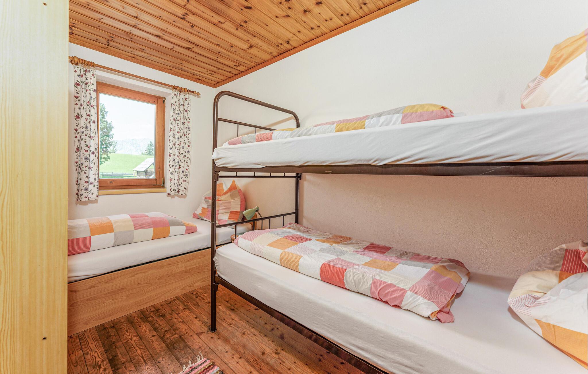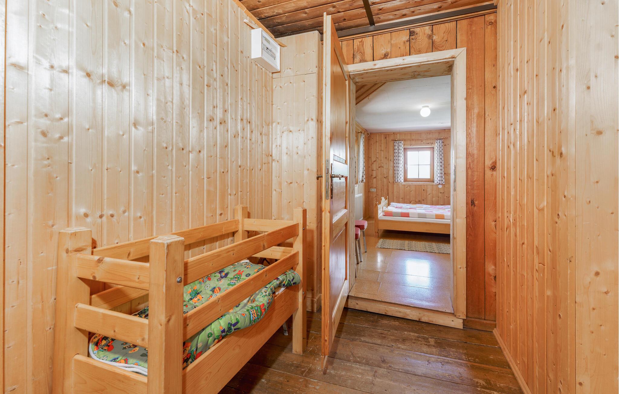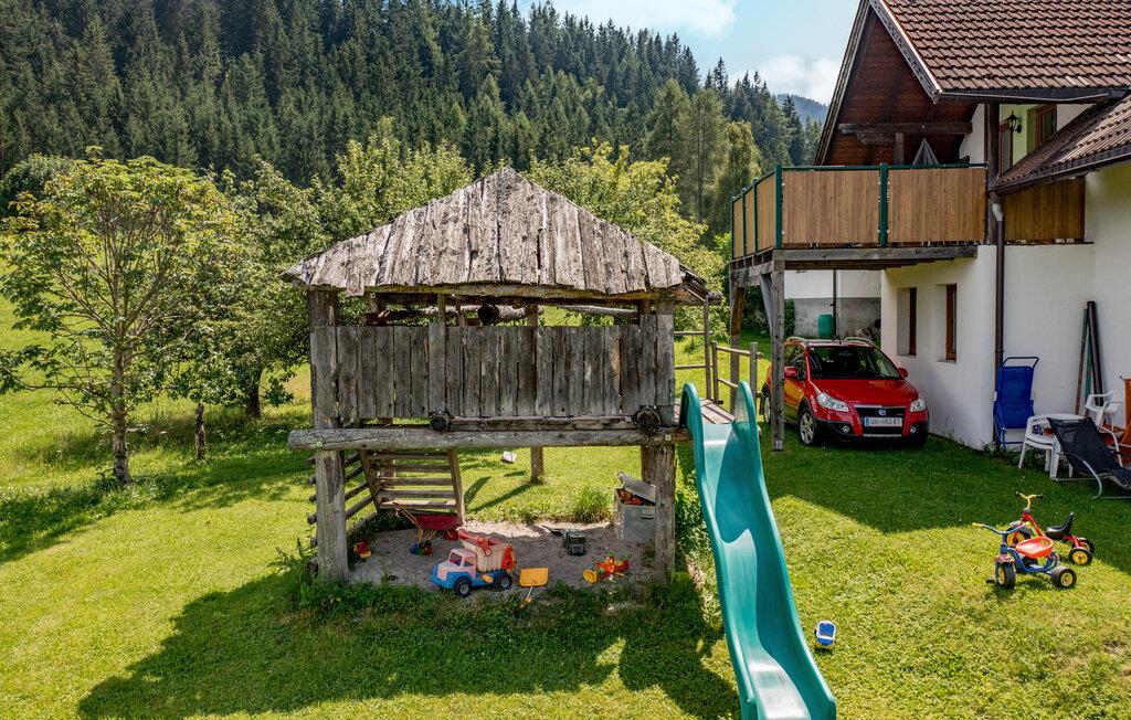 Gled deg til ferien i denne innbydende boligen. Feriehuset tilbyr nok plass til en stor gruppe eller flere familier, og imponerer med sin idylliske og fredelige beliggenhet. Innredningen kombinerer sjarmerende alpetradisjon med moderne komfort og skaper en varm og innbydende atmosfære. Den store spisestuen med utsikt over fjellene innbyr til sosialt samvær om kveldene og til å planlegge de neste aktivitetene sammen.