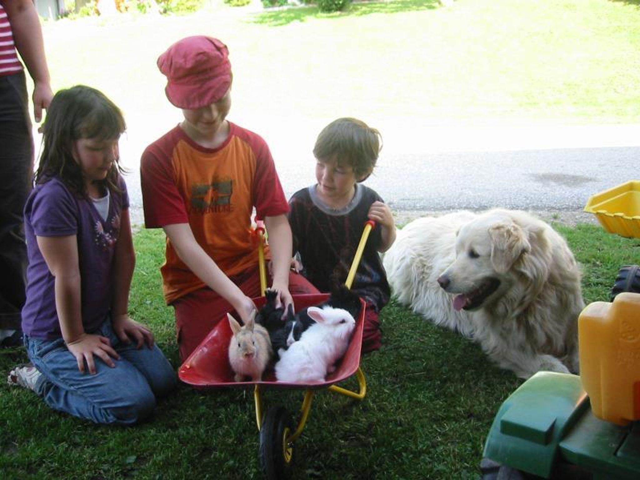 Zeithaben für Ihre Familie und teilnehmen am Bauernleben, dazu laden wir Sie herzlich ein. Helfen Sie mit die Kühe und Kälber zu füttern, sehen Sie zu beim Melken und probieren Sie am Besten gleich die frische Milch. Natürlich haben auch Ihre Kinder am Hüttstädterhof, dem zertifizierten Baby- und Kinderbauernhof alles was sie brauchen. Schaukeln, Sandkästen, Spielhaus, Trampolin, Bäume zum Klettern, Tretttraktoren, Kinderfahrräder, Scooter uvm. stehen jederzeit für sie bereit. Auch unsere Hasen, Katzen und die Ziegen Freddy und Sky freuen sich von ihnen gestreichelt zu werden. Für unsere Gäste in den Ferienwohnungen bieten wir zusätzlich ein Brötchenservice mit hauseigenen Produkten an.