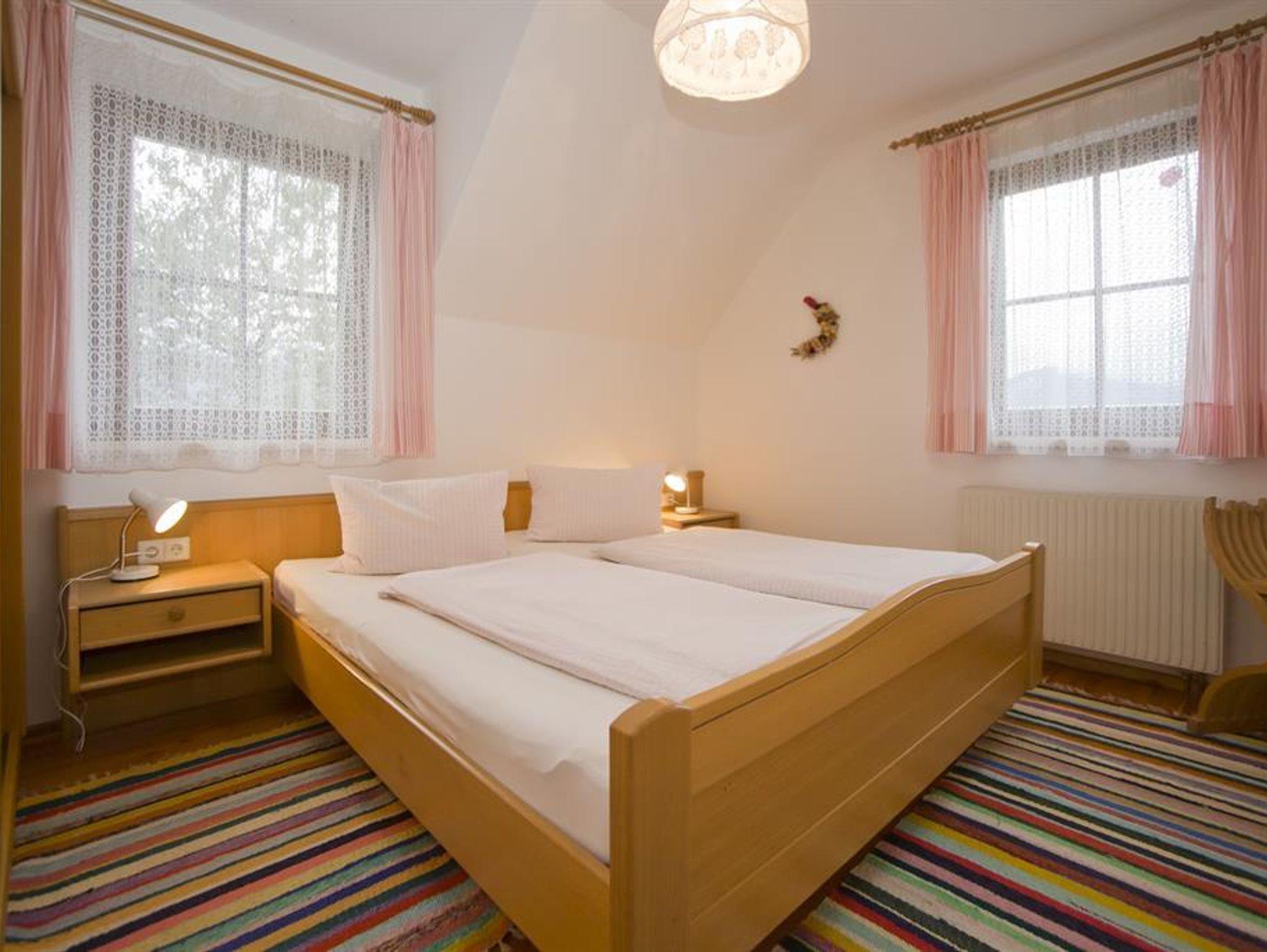 Unsere große Ferienwohnung Putterersee bietet genügend Platz für große Familien. Ein Schlafzimmer ist mit einem Doppelbett ausgestattet, das zweite Schlafzimmer mit einem Doppelbett und einem Einzelbett. Rustikale Möblierung, Blick ins Tal, Balkon, das Appartement ist im ersten Stock und kann nur über eine Stiege erreicht werden.