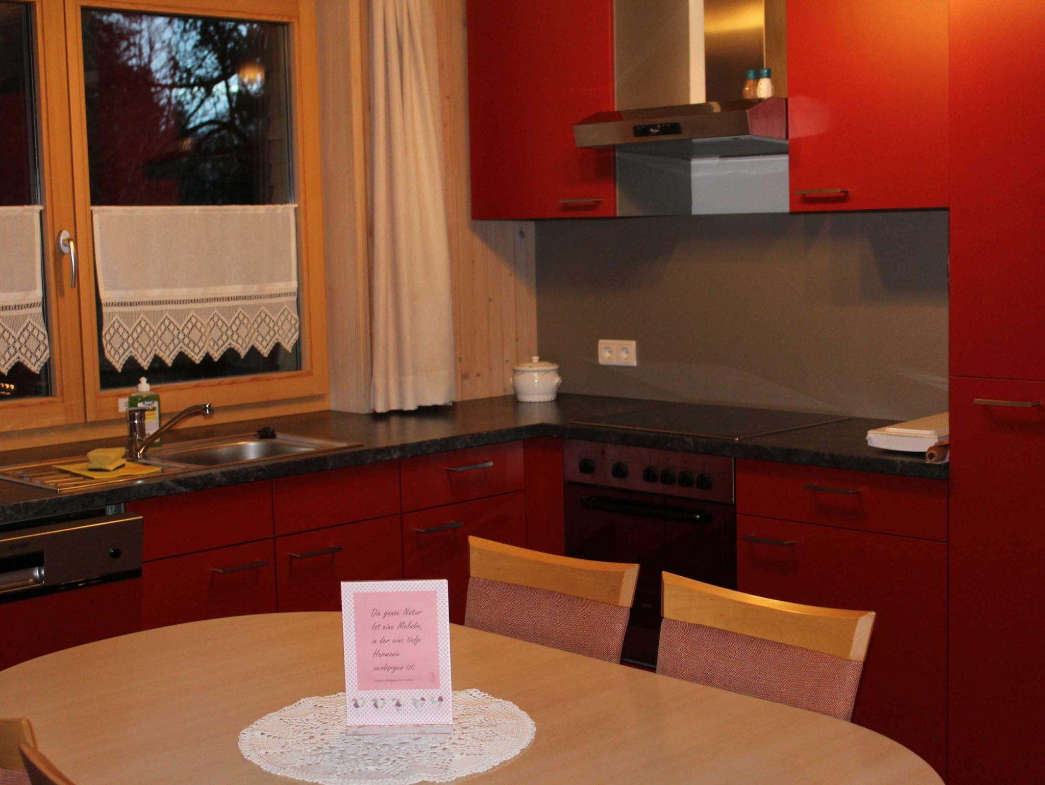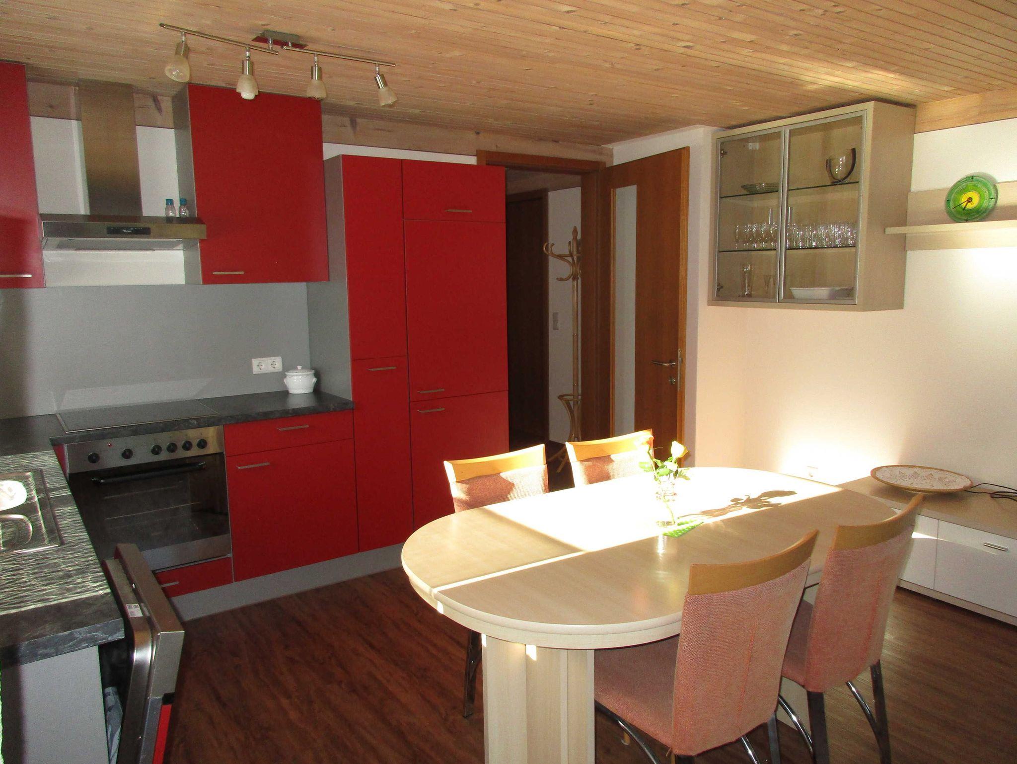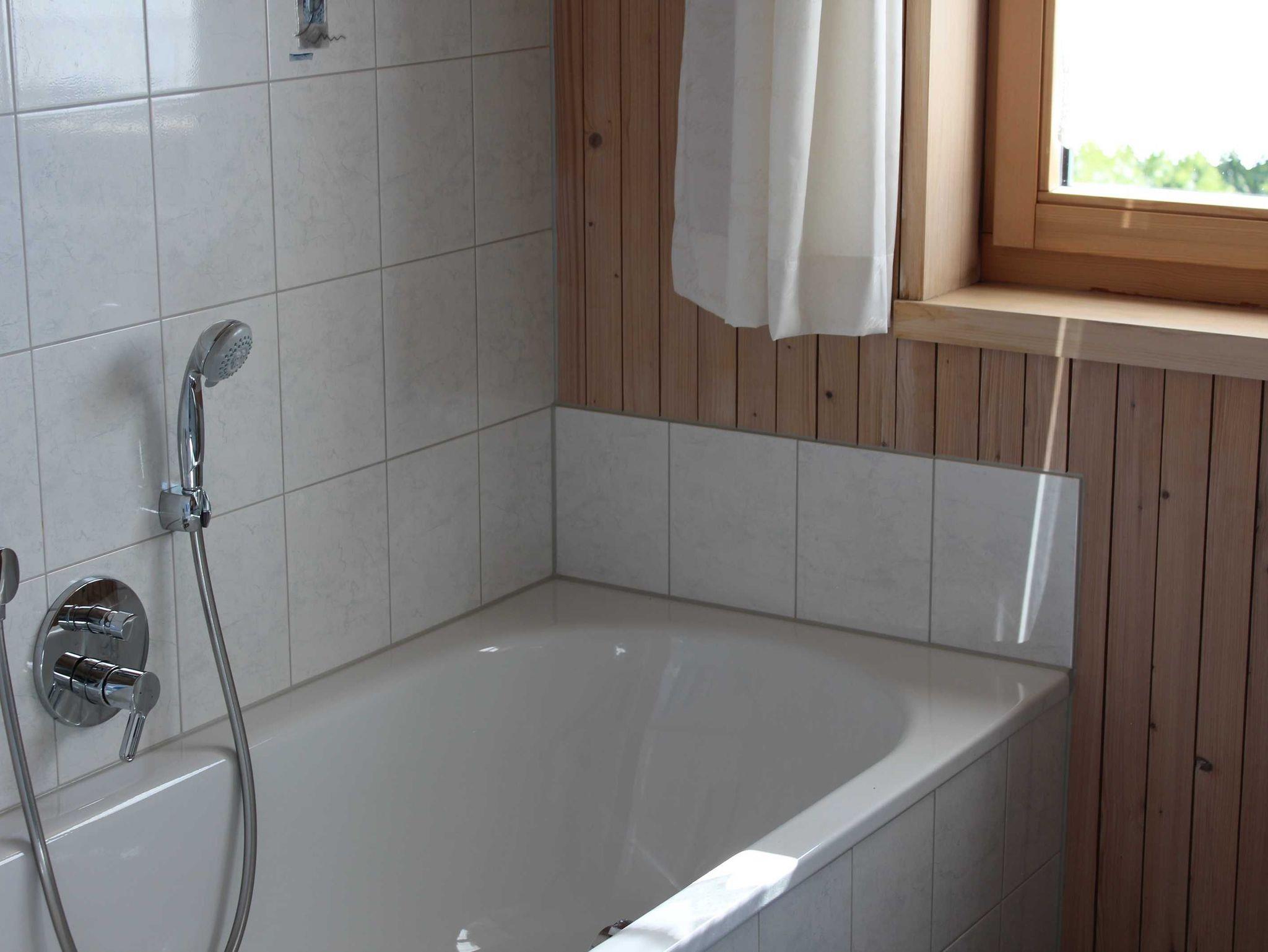 Die Ferienwohnung befindet sich im 1. OG und ist über einen separaten Eingang erreichbar. Die Küche ist mit einer modernen Küchenzeile inkl. Herd, Backofen, Wasserkocher, Geschirrspüler und diversen Kochutensilien ausgestattet. Im Wohnbereich steht ein TV zur Verfügung. Vom Schlafzimmer und Wohnzimmer aus hat man einen direkten Zugang zur eigenen überdachten Terrasse. Badezimmer und WC sind separat. Das Dorfzentrum ist in wenigen Minuten bequem zu Fuß, mit dem Auto oder Fahrrad erreichbar. Keine Hunde erlaubt. Endreinigung wird separat verrechnet. Kurtaxe bereits inklusive.