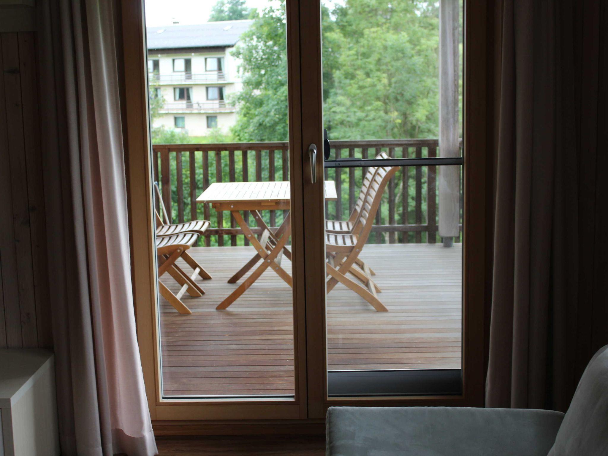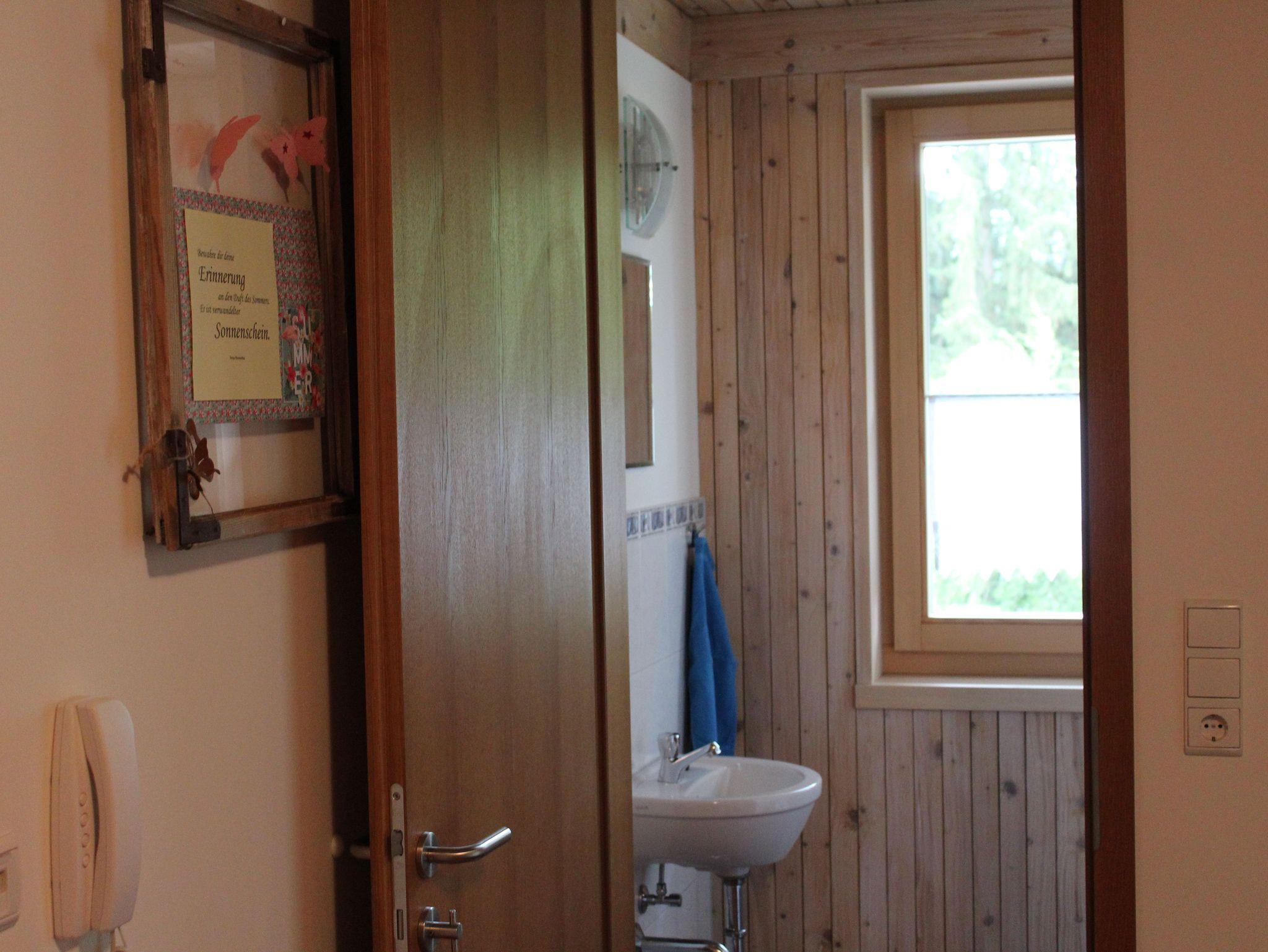 Unsere geräumige Ferienwohnung wurde mit nur Naturholz ausgebaut. Die Gäste erreichen die Wohnung über einen separaten Eingang. Von einer eigenen überdachten Terrasse aus, kann die Naturlandschaft genossen werden.