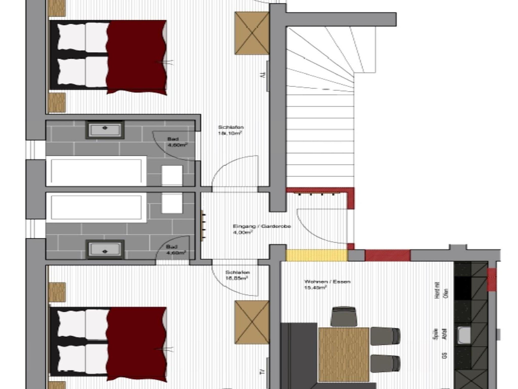 Appartement 6 „ MOOS“ 63m2 2-5 Personen Appartement im 2. Stock teilweise Dachschräge mit 2 Balkonen