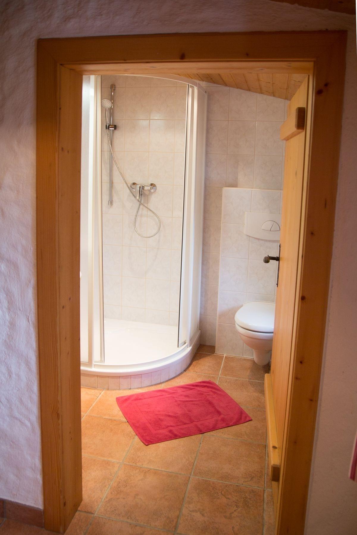 • 1 Badezimmer mit Dusche, Waschbecken und WC
