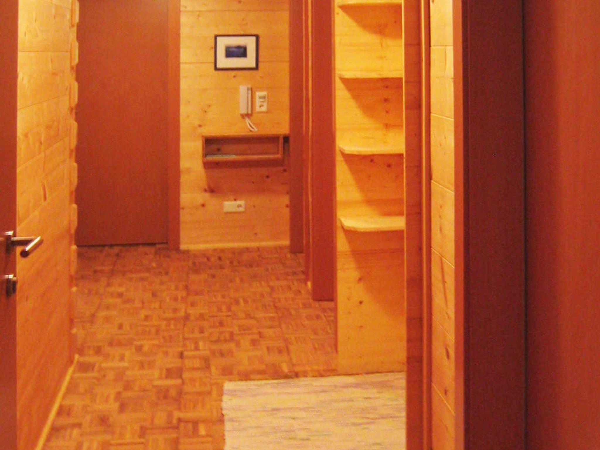 Die geräumige Ferienwohnung ist rundum aus Fichten-Holz gefertigt. Der Fußboden ist ein geölter Parkett aus Eiche.