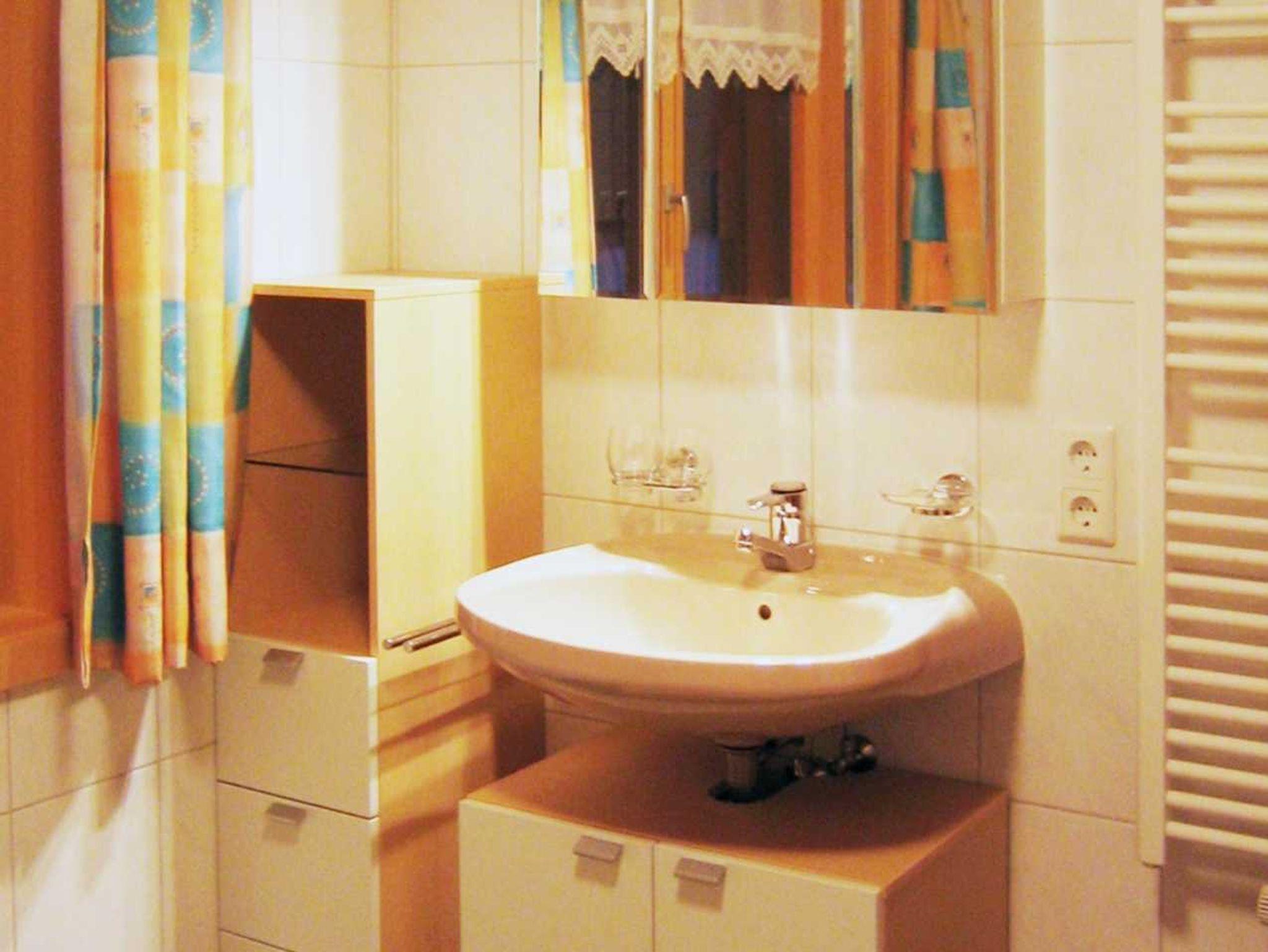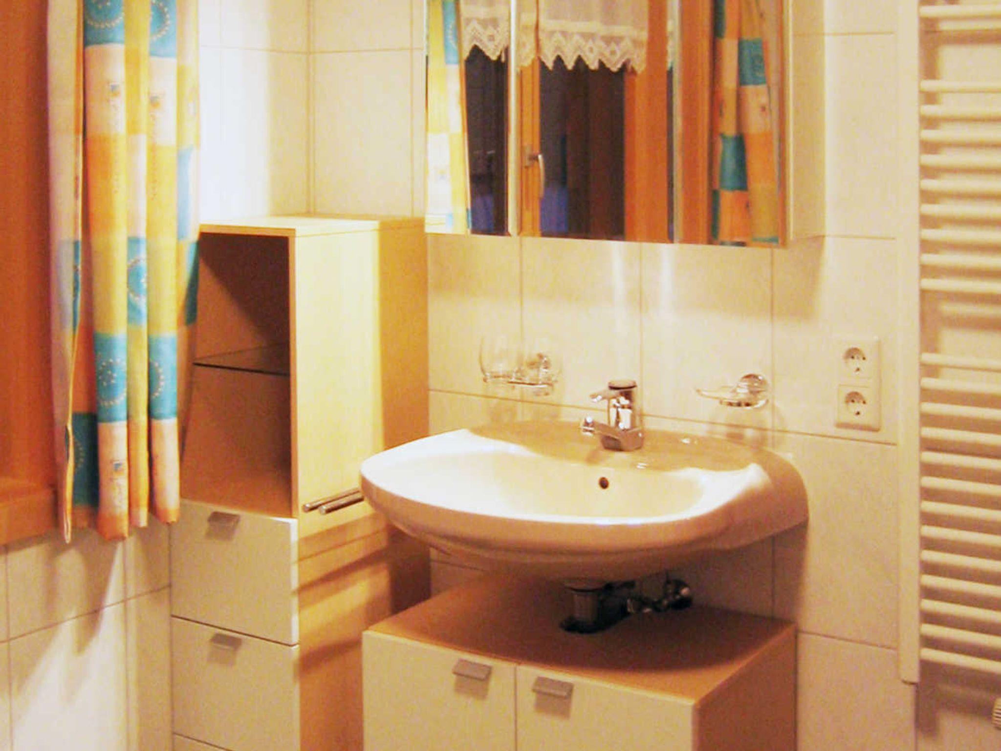 Im Badezimmer gibt es ein Waschbecken mit Spiegelschrank sowie eine Dusche. Hand- und Duschtücher stellen wir Ihnen zur Verfügung. Weiters bieten wir Ihnen auch einen Wäscheständer.
