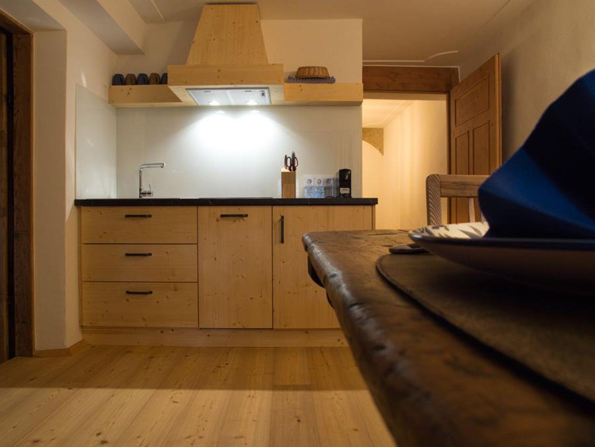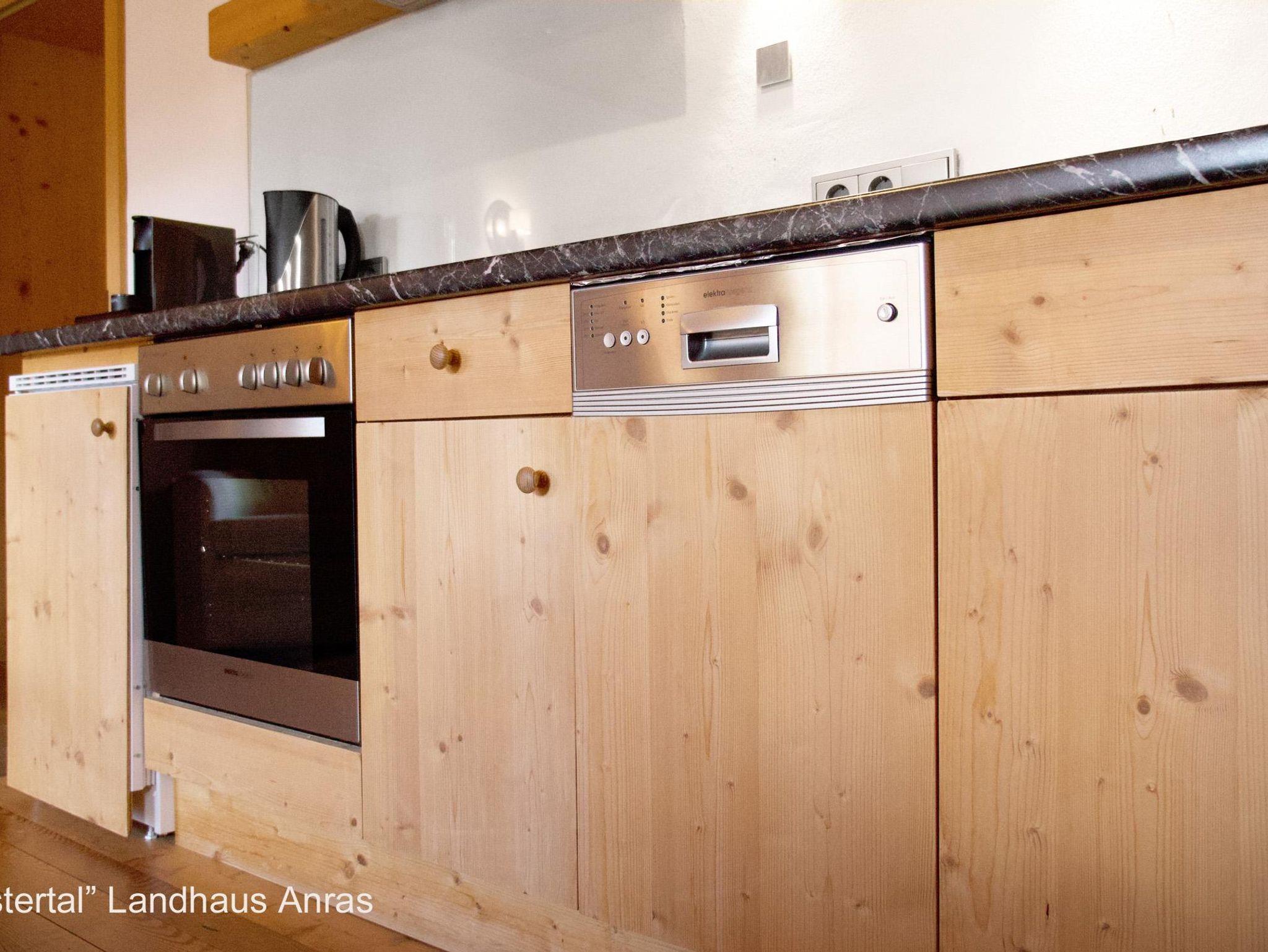 Das Appartement Pustertal ist traumhaft schön durch handgehackte Holzbalken . Gemütlicher Wohn-/Eßraum mit offener Küche, Luxus-Bad mit Wanne, Dusche, WC, Bidet, Handtuchwärmer (nur Heizperiode), Leuchtspiegel Südbalkon mit Blick aufs Schloss