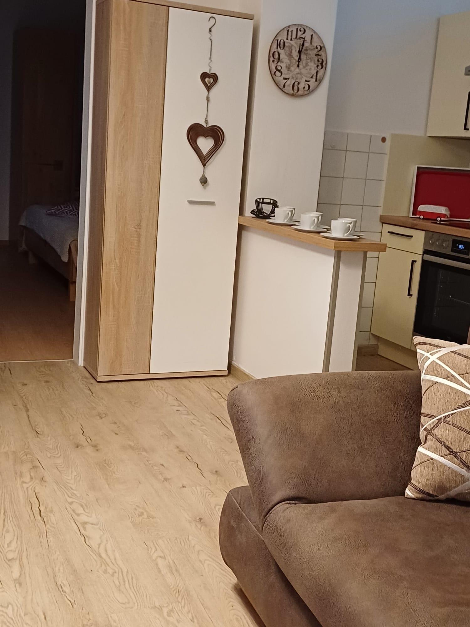 Das geschmackvoll, klimatisierte und moderne Apartment 2 hat 70 m² Wohnfläche. Das Wohnschlafzimmer verfügt über eine stylische, ausziehbare Wohnzimmergarnitur und bietet Ihnen dadurch die Möglichkeit noch 2 Personen mit zu nehmen. Smart TV`s sind natürlich im Wohnzschlafzimmer und Küche vorhanden. Die vollausgestattete Küche ladet sie zum Zubereiten eines ausgiebigen Frühstücks oder zum Kochen von gutem Essen ein.