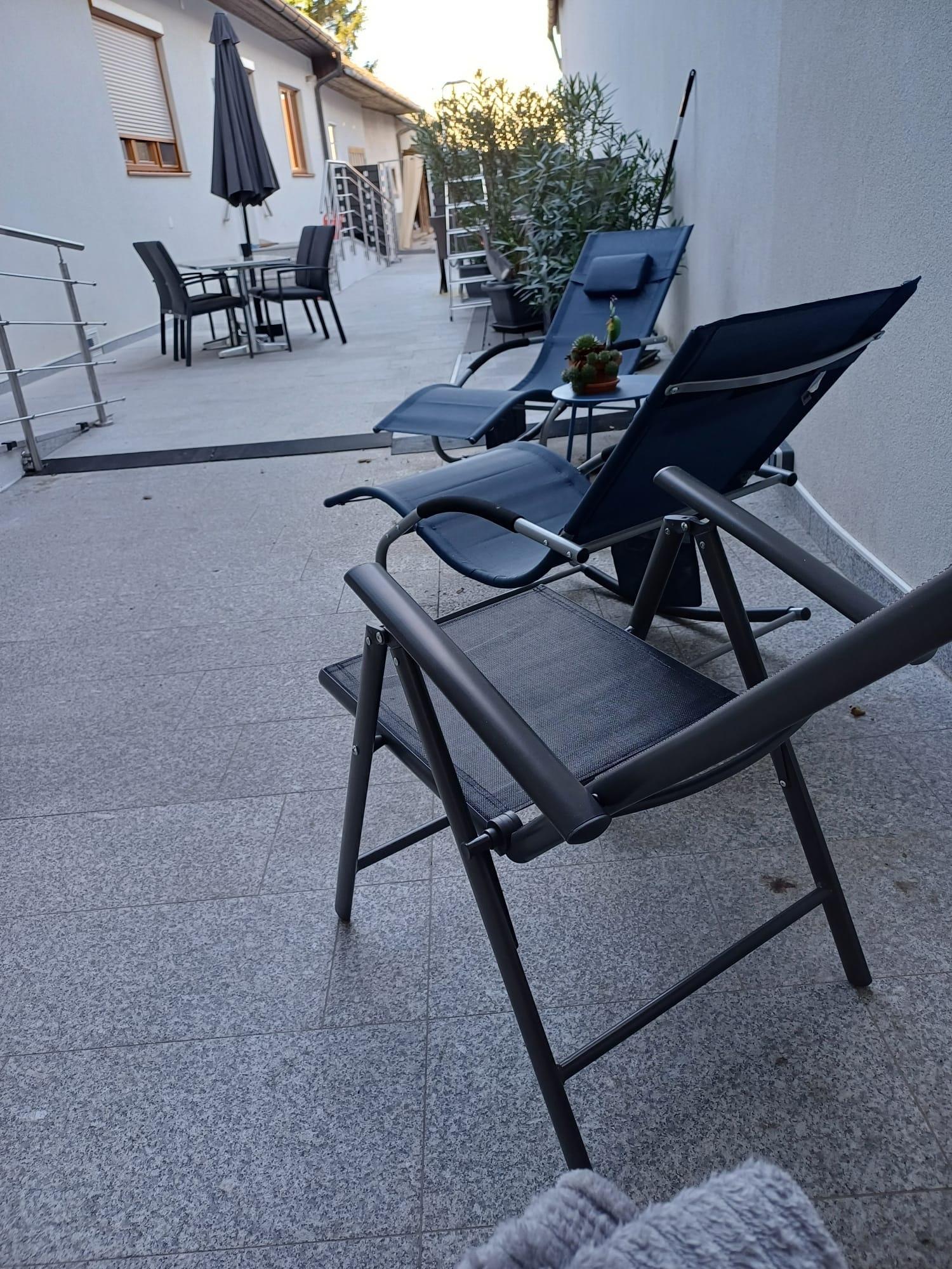 Im Außenbereich befindet sich ein kleiner Swimmingpool und Liegen um nach dem Radfahren sich ein wenig zu entspannen.