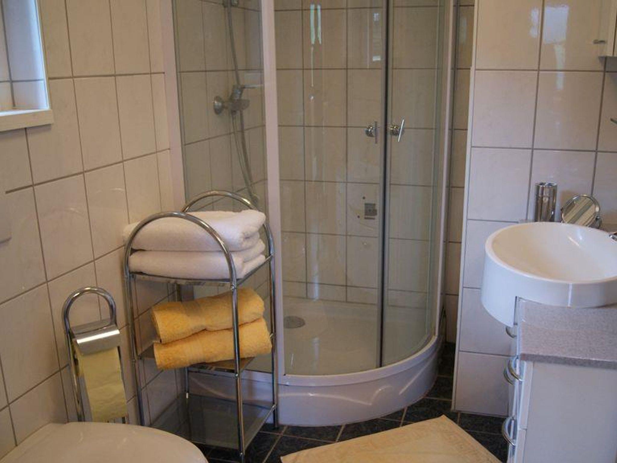 und ein getrennt begehbares Schlafzimmer. Das Badezimmer verfügt über Dusche/WC.