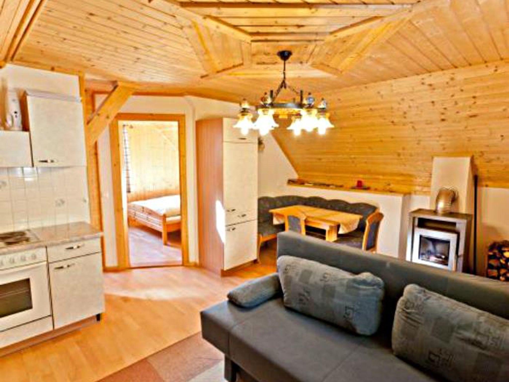 Diese Ferienwohnung verfügt über einen komfortablen Wohn-Schlafraum, eine Küchenzeile mit Essecke, SAT-TV, Kaminofen, MP3 Player