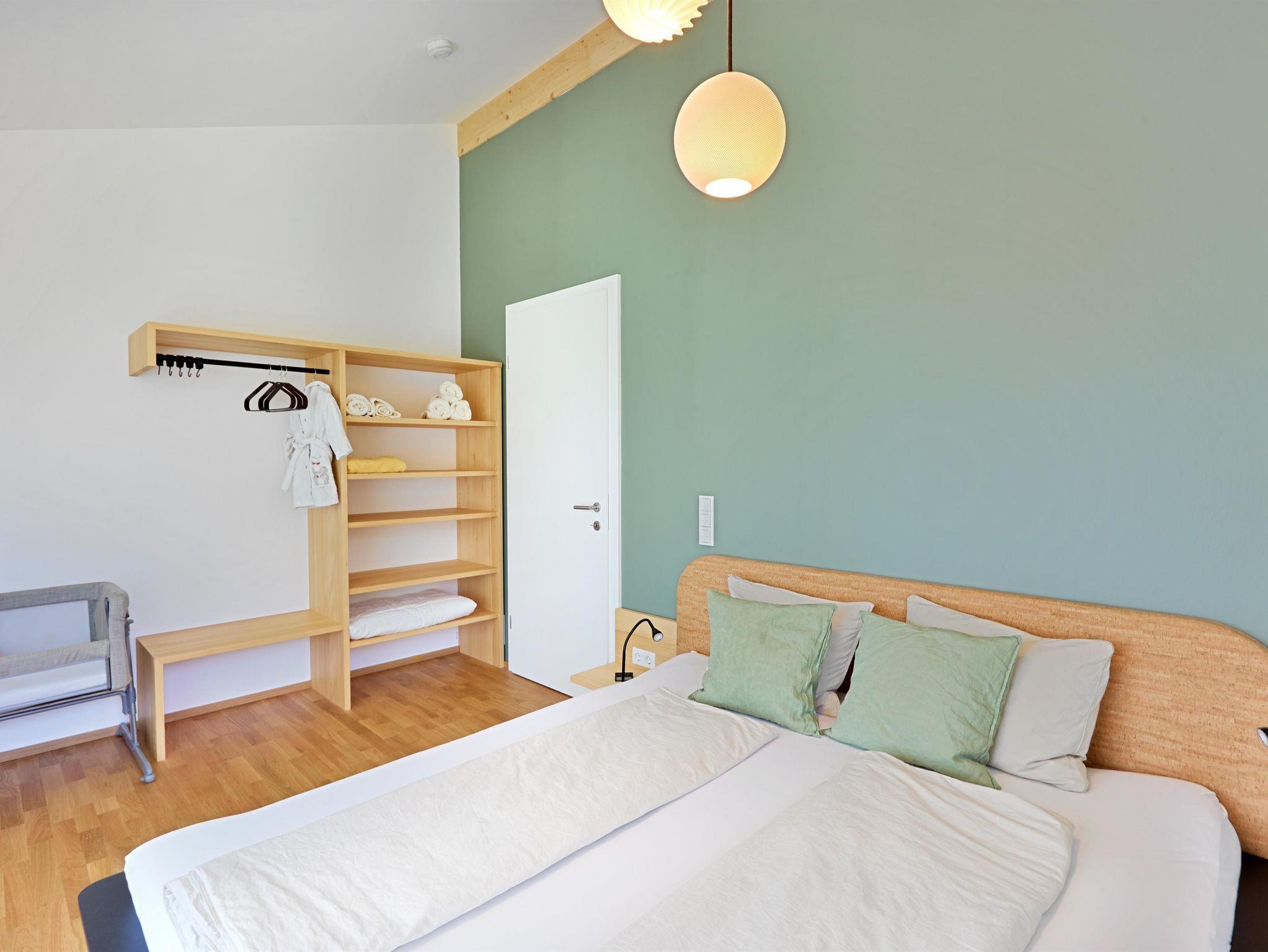 Zimmereaufteilung wie folgt: Zwei lichtdurchflutete, nach Süden ausgerichtete Schlafzimmer mit Doppelbetten und ein gemütliches Schlafzimmer mit ausziehbarem Einzelbett (80x200 auf 160x200).