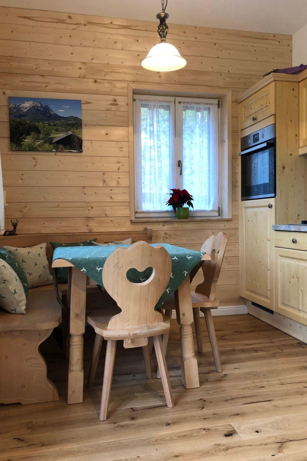 In our new flat chalet you can choose between one flat for four guests (extra bed possible) and two flats for two guests each (extra bed possible) with upscale alpine-style furnishings, one designed for four guests (with children's travel bed 120 cm on request) and two for two guests (with children's travel bed 120 cm on request). We will be happy to inform you about the possibility of accommodating additional guests on request. Are you travelling in a larger group? No problem: by opening a double connecting door, two flats can be converted into one accommodation unit in no time at all, which in turn can be connected to the flat on the upper floor via a shared staircase. A carport with three parking spaces is located directly next to the chalet. Each of the flats has a balcony or terrace with a bench where you can find the peace and quiet you have been longing for and enjoy a breathtaking panoramic view. Depending on whether you have opted for a flat for two or four guests, you can retreat to two or one bedroom. These are furnished with a 180x200 cm double bed without a footboard. High-quality, medium-hard mattresses and the finest Austrian bed linen ensure that you feel comfortable in bed. If you wish, you can also enjoy the full range of cable TV in the bedroom. The kitchen corner with a fridge and freezer compartment, cooker and oven, kettle, coffee machine, a selection of pots, pans, wine and water glasses, as well as country-style china crockery, allows you to self-cater for longer periods of time. A comfortable corner bench invites you to sit together for hours and a beautiful miniature tiled stove provides cosy warmth in addition to the underfloor heating in winter. A comfortable sofa and a modern flat-screen TV harmoniously complement this area and invite you to spend time together. The bathroom pampers you with a spacious shower cubicle and a double or single washbasin. It is equipped with a hairdryer and WC. In the flat for four people you will find a second separate toilet. We have provided you with a towel and a bath towel, as well as shower gel, hair shampoo and body lotion for your first needs. From the eat-in kitchen you can access your own terrace or balcony with a breathtaking view of the mountains, depending on the accommodation unit, which are equipped with cosy seating for you.