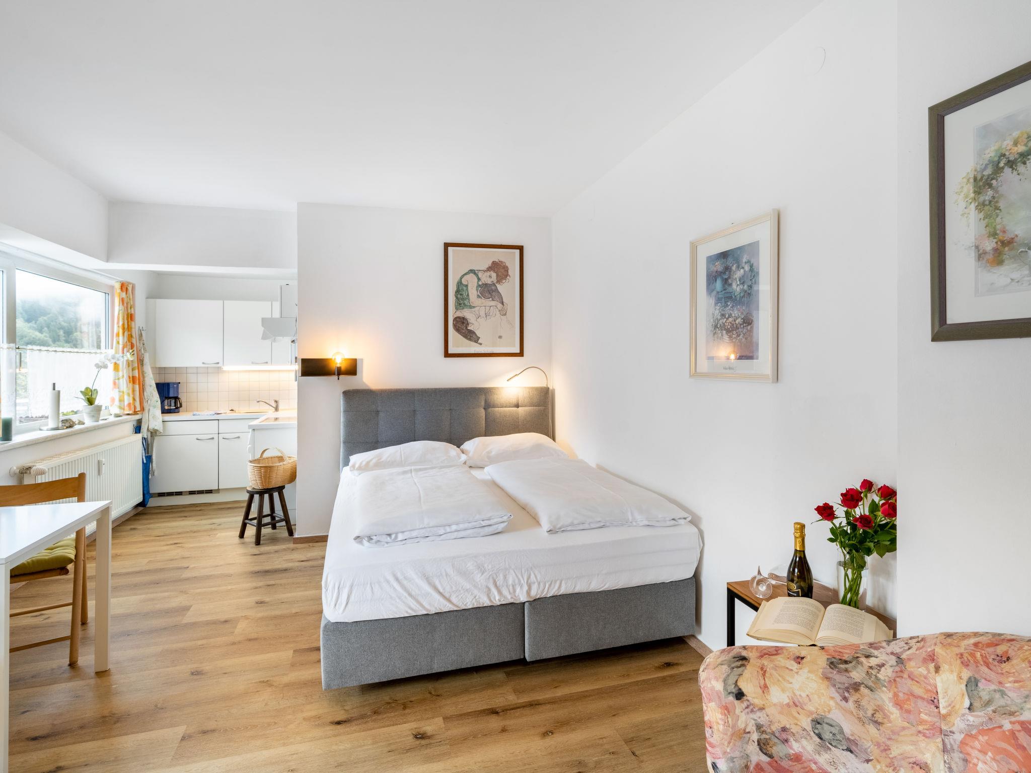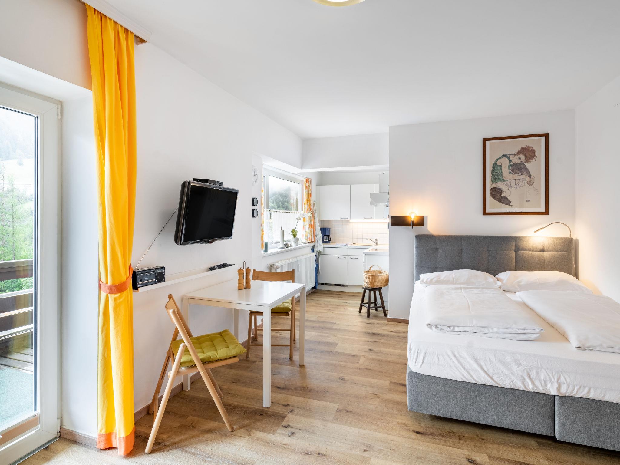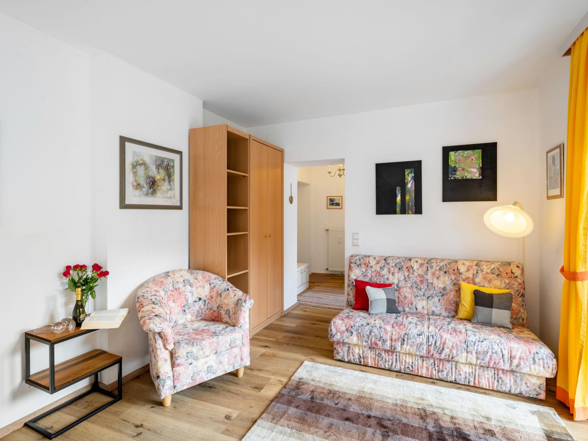 "Claudia Top 7", 1-room apartment 30 m2 on 1st floor. Spacious and bright, partly renovated in 2021, very comfortable furnishings: entrance hall. Living/sleeping room with 1 double sofabed, dining table and satellite TV (flat screen). Exit to the balcony. Open kitchen (oven, 4 ceramic glass hob hotplates, toaster, kettle, electric coffee machine). Shower/WC. Parquet floors. Balcony 7 m2. Balcony furniture, deck chairs (1). Beautiful panoramic view of the mountains. Facilities: Internet (WiFi, free). Please note: non-smokers only. Smoke alarm. 50403-000316-2020