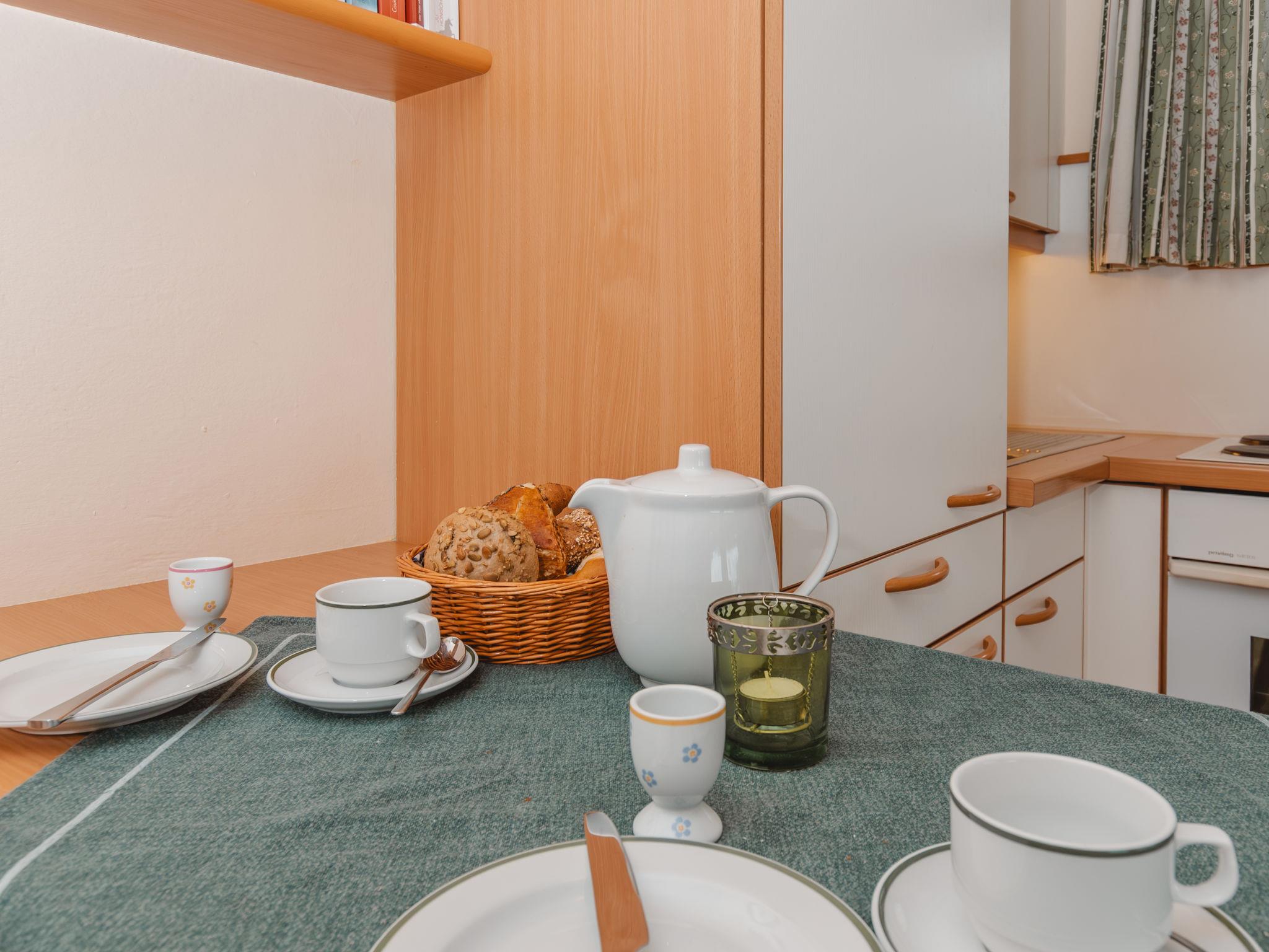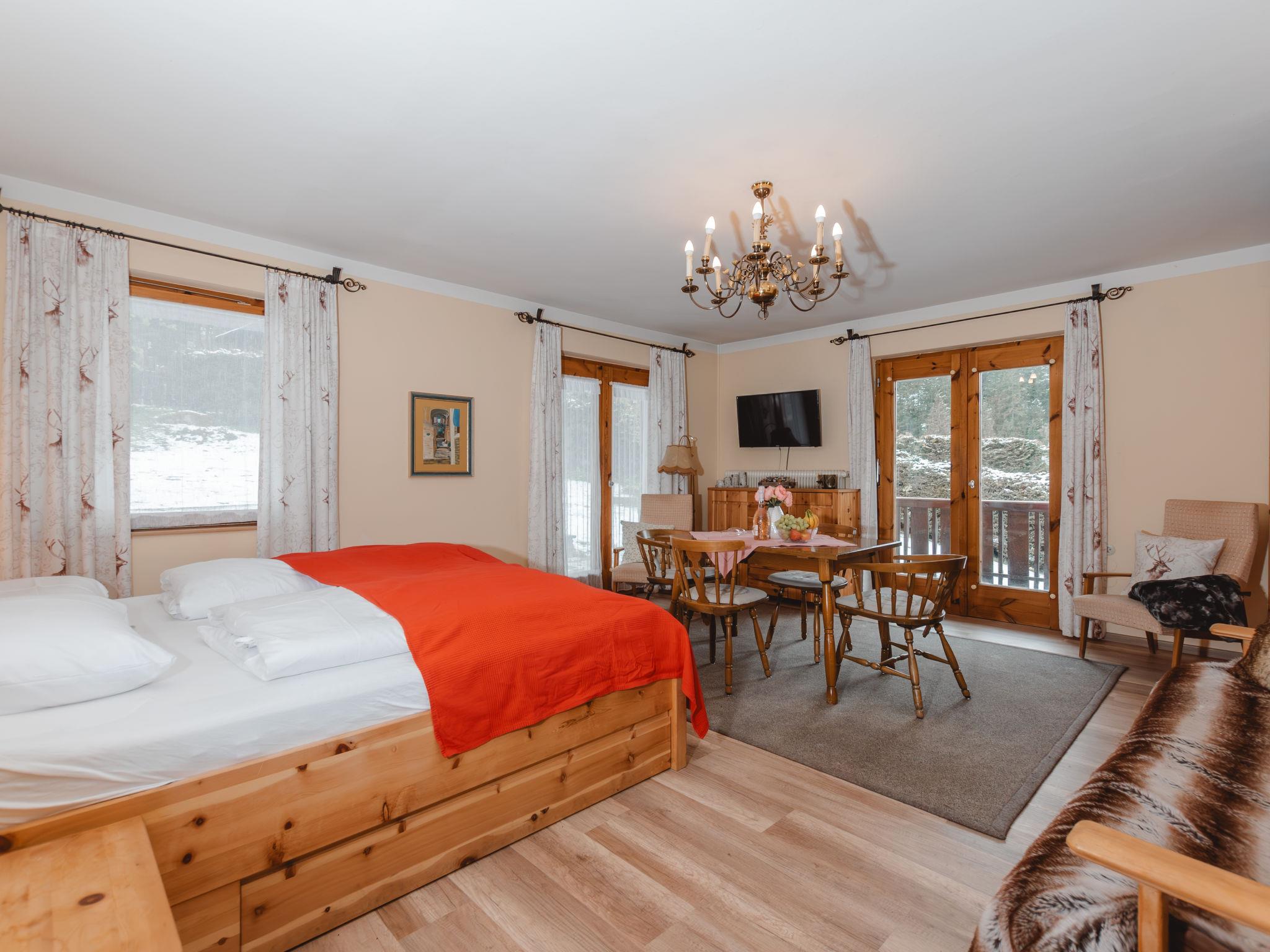 "Margret", 2-room apartment 40 m2. Spacious and bright, tasteful and cosy furnishings: entrance hall. Living/sleeping room with 1 double sofabed, 1 double bed, dining table and cable TV (flat screen). Exit to the balcony. Kitchen (4 hot plates, oven, toaster, kettle, electric coffee machine) with small dining table. Exit to the terrace. Bath/WC. Parquet floors. Comfortable furnishings in the country house style. Balcony, large terrace. Terrace furniture. Beautiful view of the forest. Facilities: safe, hair dryer. Internet (WiFi). Parking, garage (extra) at the house. Please note: suitable for families. Non-smokers only. 2 pets/ dogs allowed. 50403-000158-2020