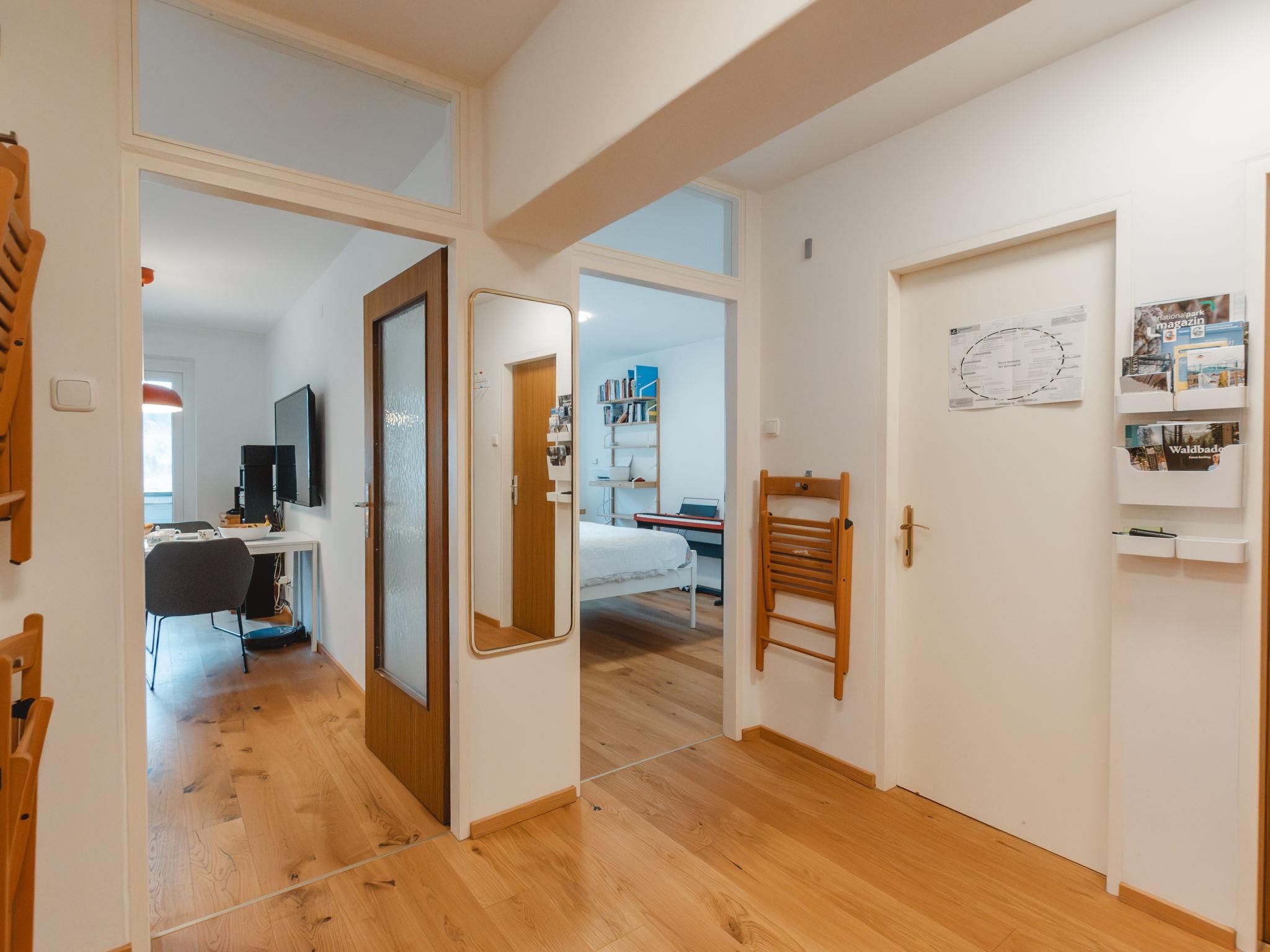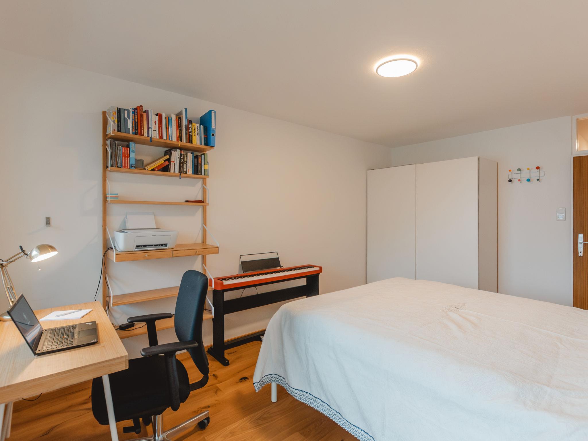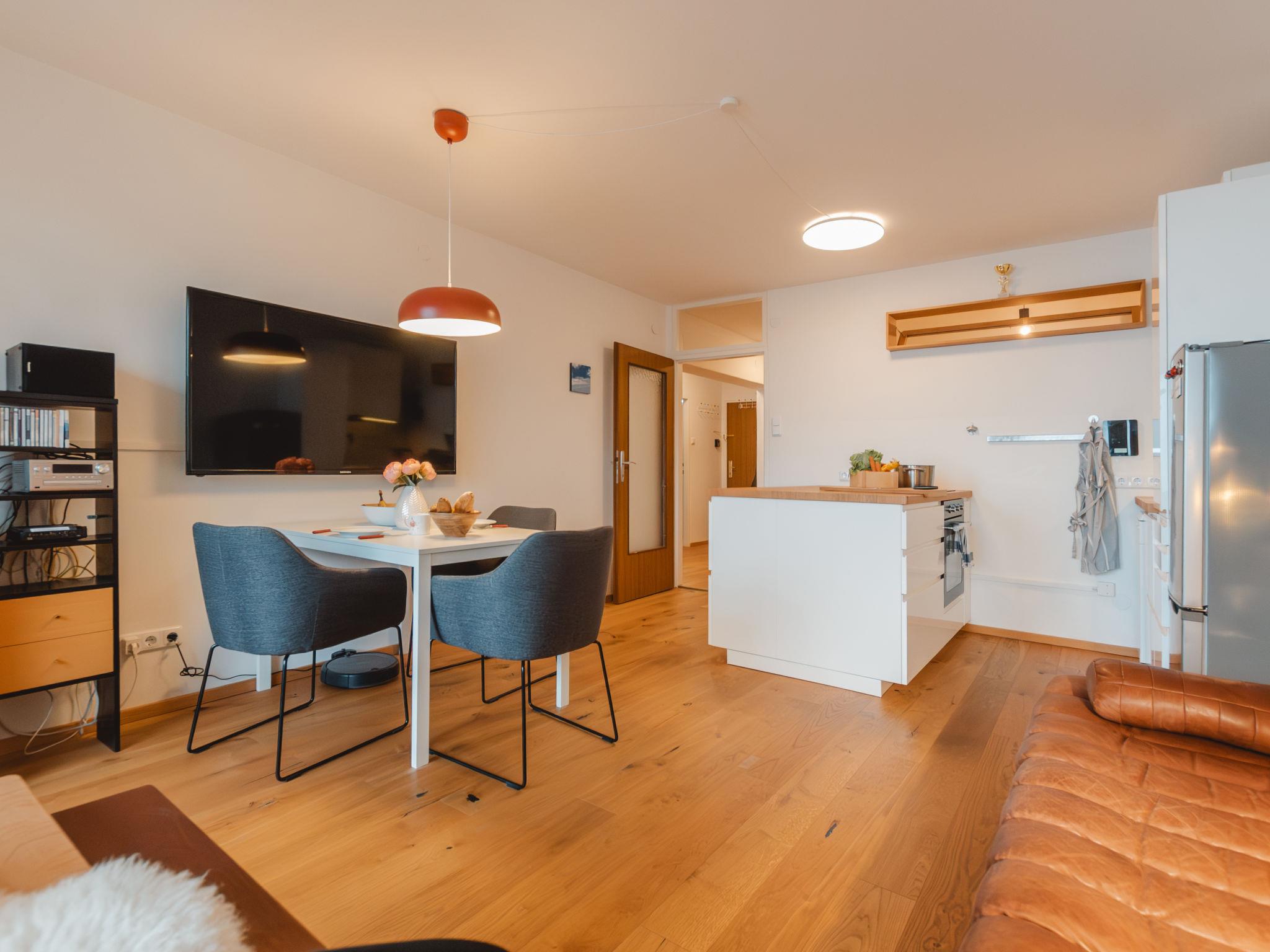 "Unser Glück in den Bergen", 3-room apartment 55 m2 on 3rd floor. Spacious and bright, fully renovated in 2019, very modern and tasteful furnishings: large entrance hall. Living/dining room with dining table and cable TV (flat screen), hi-fi system. Exit to the balcony. 1 double bedroom. Exit to the balcony. 1 room with sliding door. Open kitchen (oven, dishwasher, 4 ceramic glass hob hotplates, grill, steamer, raclette grill, fondue Set (cheese)). Bath/WC, shower/WC. Wooden floors. 2 balconies. Balcony furniture. Beautiful view of the valley. Facilities: Internet (WiFi, free). Parking. Please note: suitable for families. Non-smokers only. Smoke alarm. 50403-000496-2023