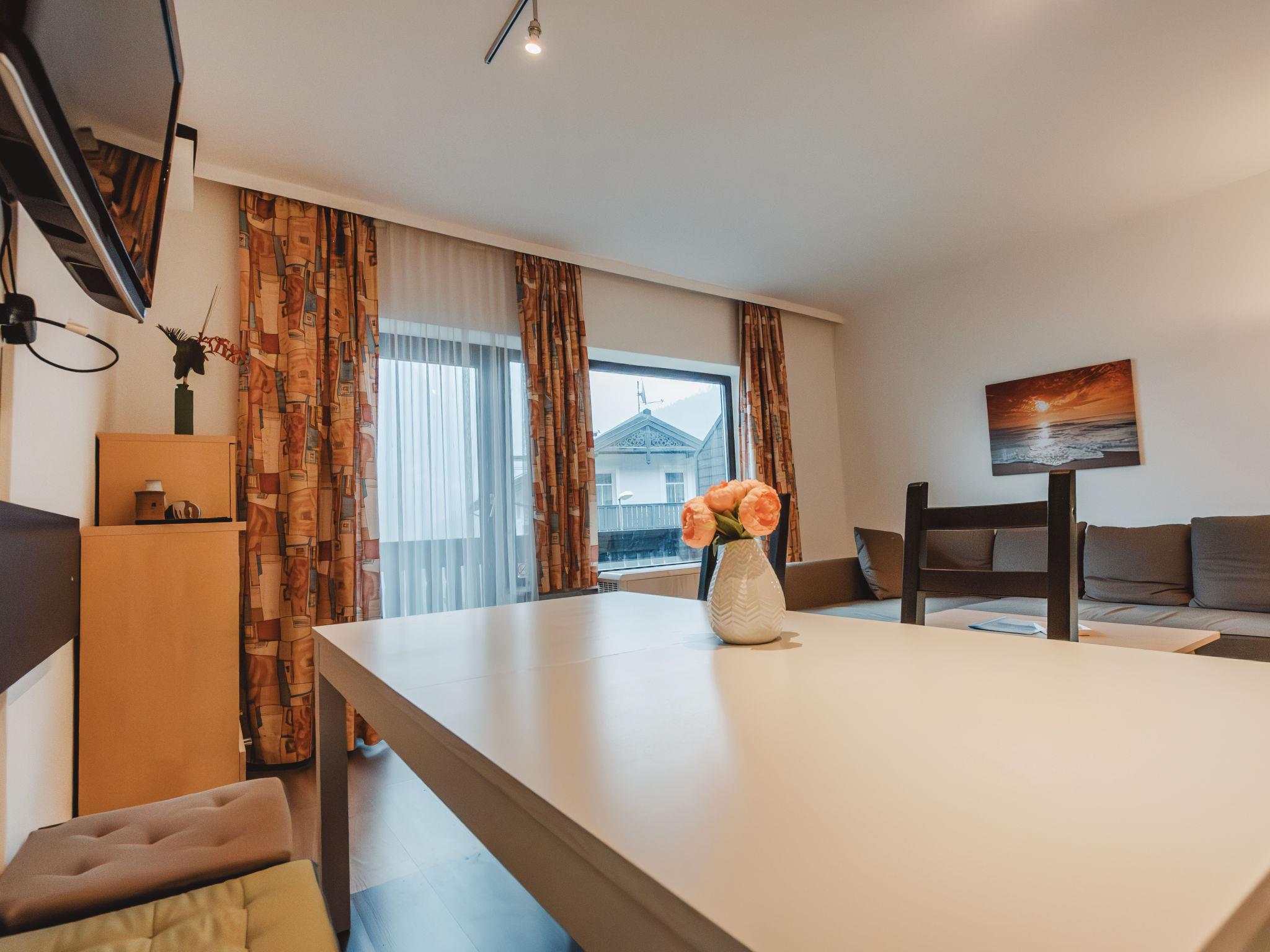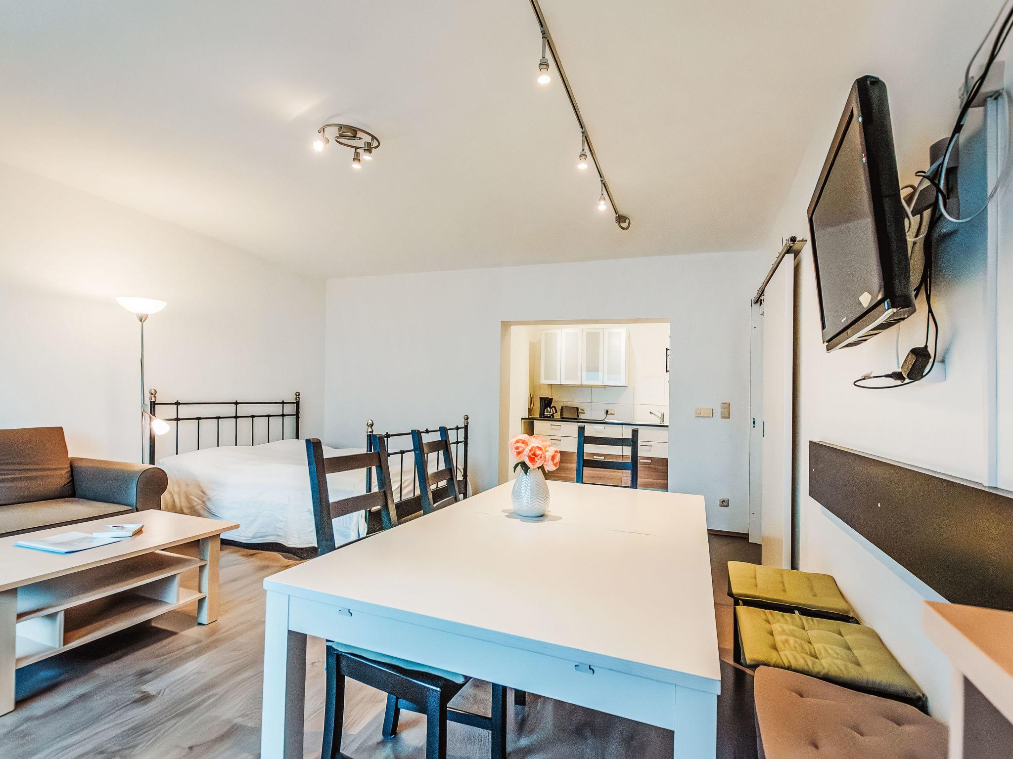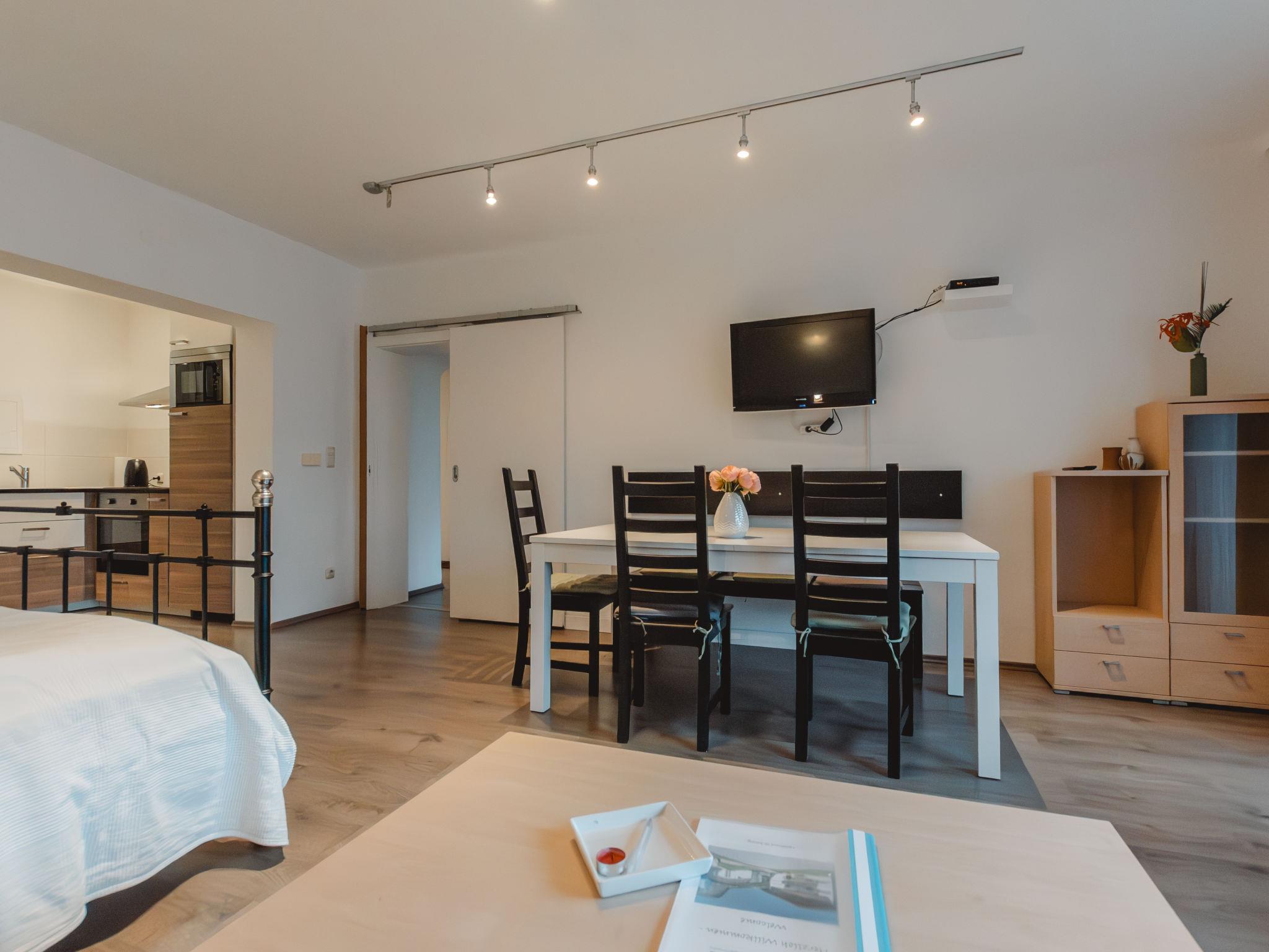 2-room apartment 72 m2. Spacious and bright, simple and practical furnishings: entrance hall. Living/sleeping room with 1 sofabed, 1 double bed, dining table and cable TV (flat screen), electric heating. Exit to the balcony. 1 double bedroom with TV (flat screen). Exit to the balcony. Alcove with 1 x 2 bunk beds (90 cm, length 200 cm). Large, open kitchen (oven, dishwasher, 4 ceramic glass hob hotplates, toaster, kettle, microwave, electric coffee machine). Bath/WC, shower/WC. Parquet floors. 2 small balconies. Balcony furniture. Very beautiful view of the mountains. Facilities: Internet (WiFi, free). Please note: apartment street side. 1 pet/ dog allowed. Instead of an enclosed bedroom, some sleeping areas are located in an open-plan area (gallery, alcove, etc.). 50403-000513-2023
