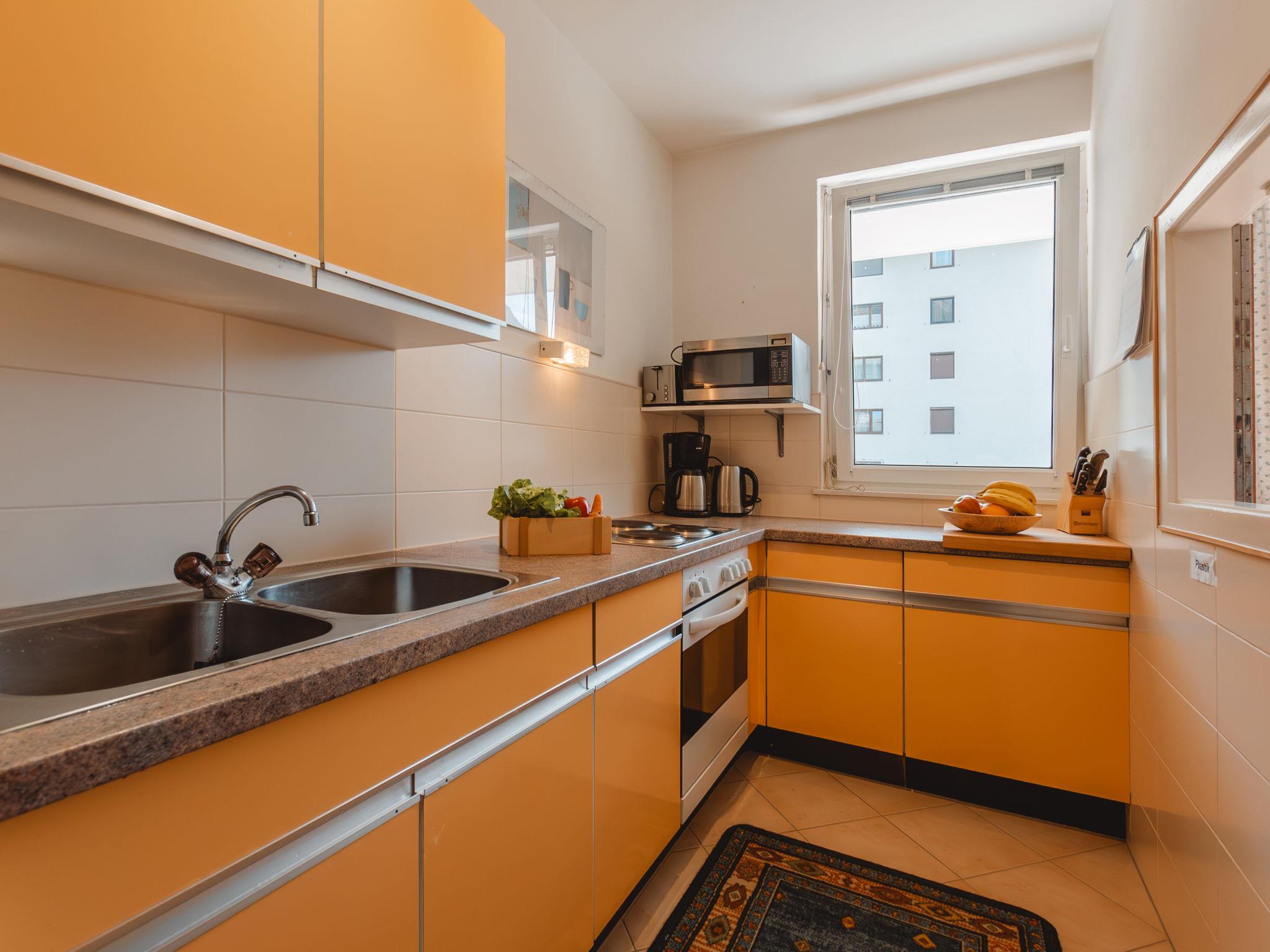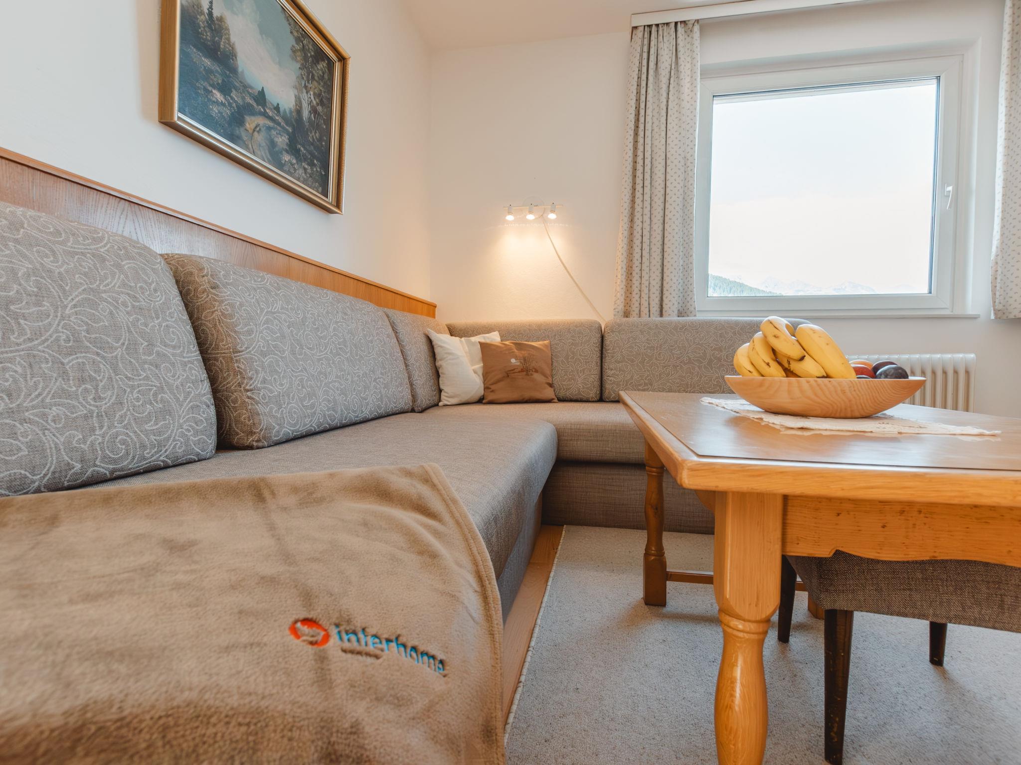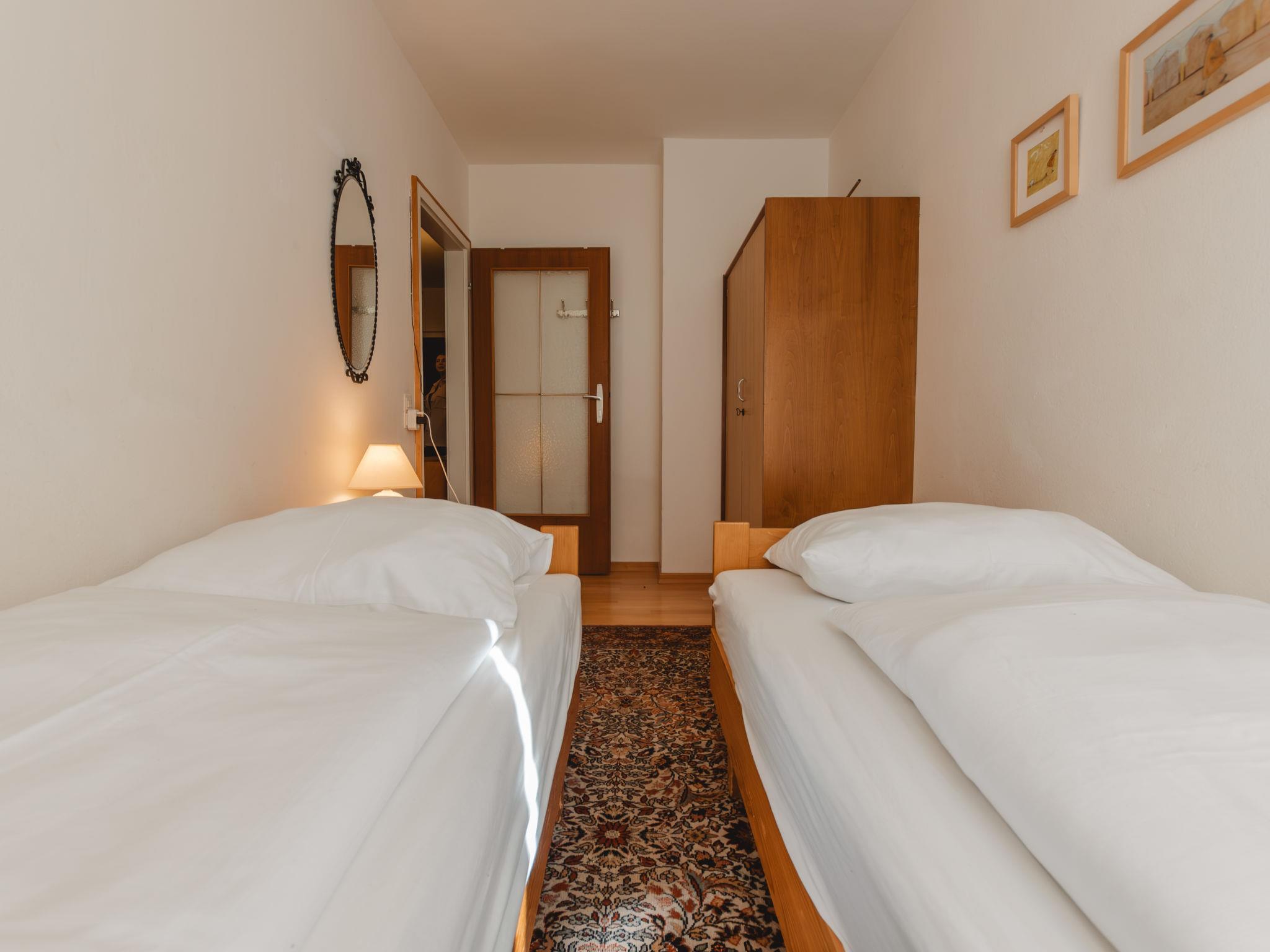"Martini", 3-room apartment 75 m2 on 1st floor. Spacious and bright, very cosy furnishings: entrance hall. Living/dining room with 2 sofabeds, dining table and cable TV (flat screen), DVD. Exit to the balcony. 1 double bedroom. Exit to the balcony. 1 room with 2 beds. Kitchen (4 hot plates, oven, toaster, kettle, microwave, electric coffee machine) with hatch. Shower, sep. WC. Parquet floors. 2 balconies. Balcony furniture. Marvellous view of the mountains and the valley. Facilities: Internet (WiFi, free). Please note: fridge without freezer. Smoke alarm. 50403-000292-2020