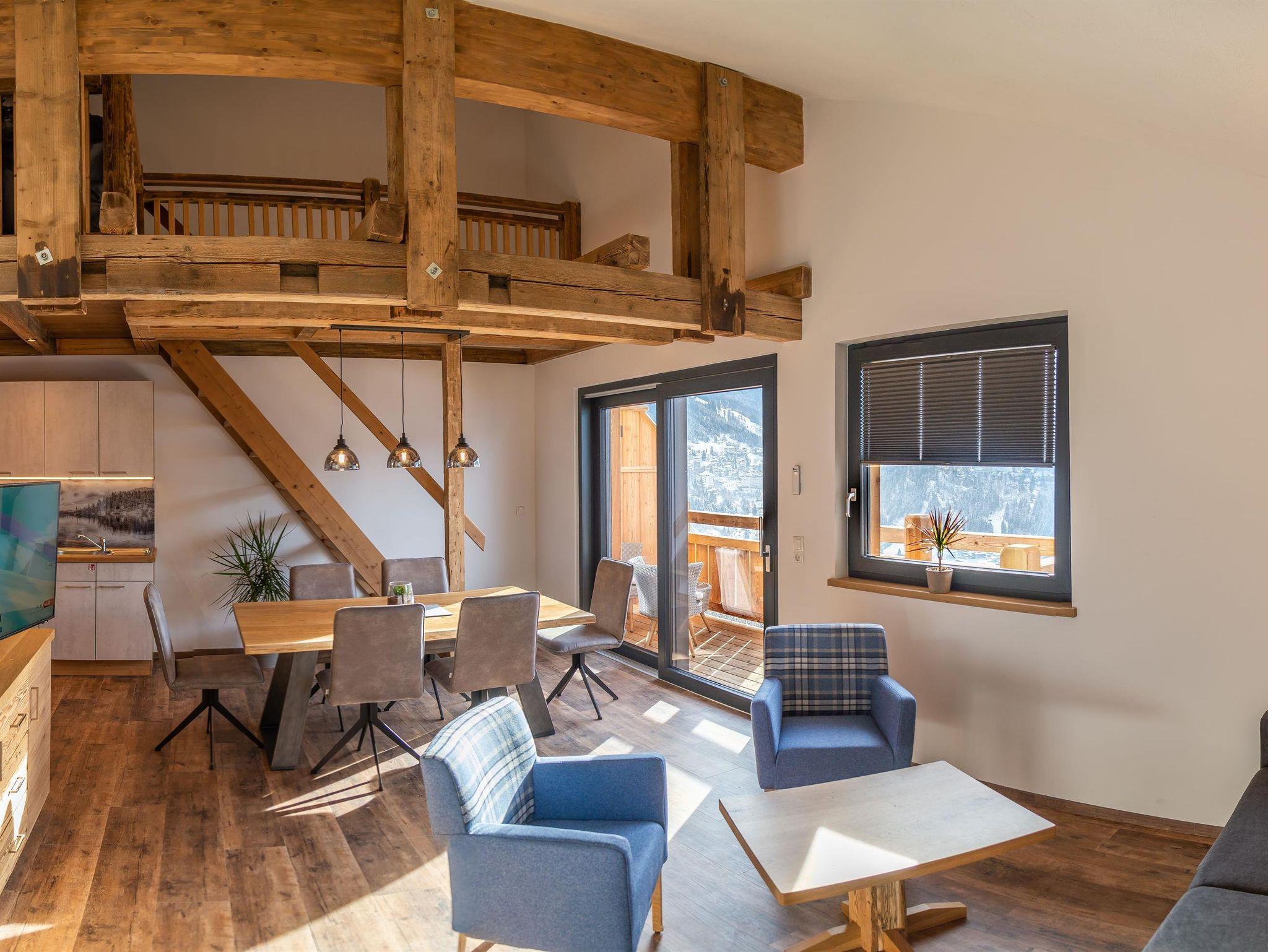 Das Appartement Blick liegt im Dachgeschoss vom Gasthof Gamskar und hat eine Grösse von 90 m².