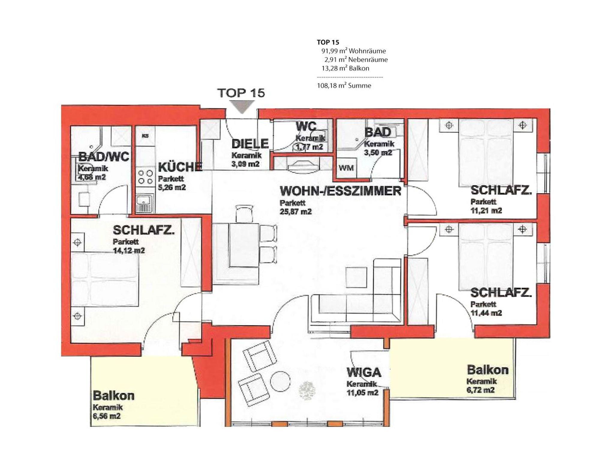 • 3 Schlafzimmer mit je einem Doppelbett 160x200cm, inklusive Bettwäsche (2 Schlafzimmer mit Balkon)