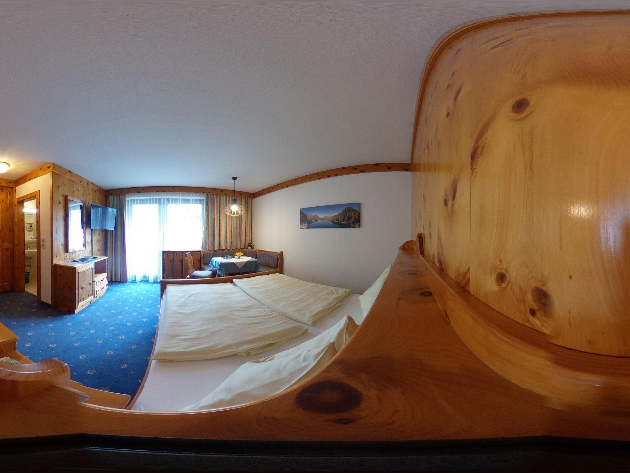Süd-Balkon. Tolles reichhaltiges Frühstück in einer schönen Zirbenholzstube. Gerne komme ich