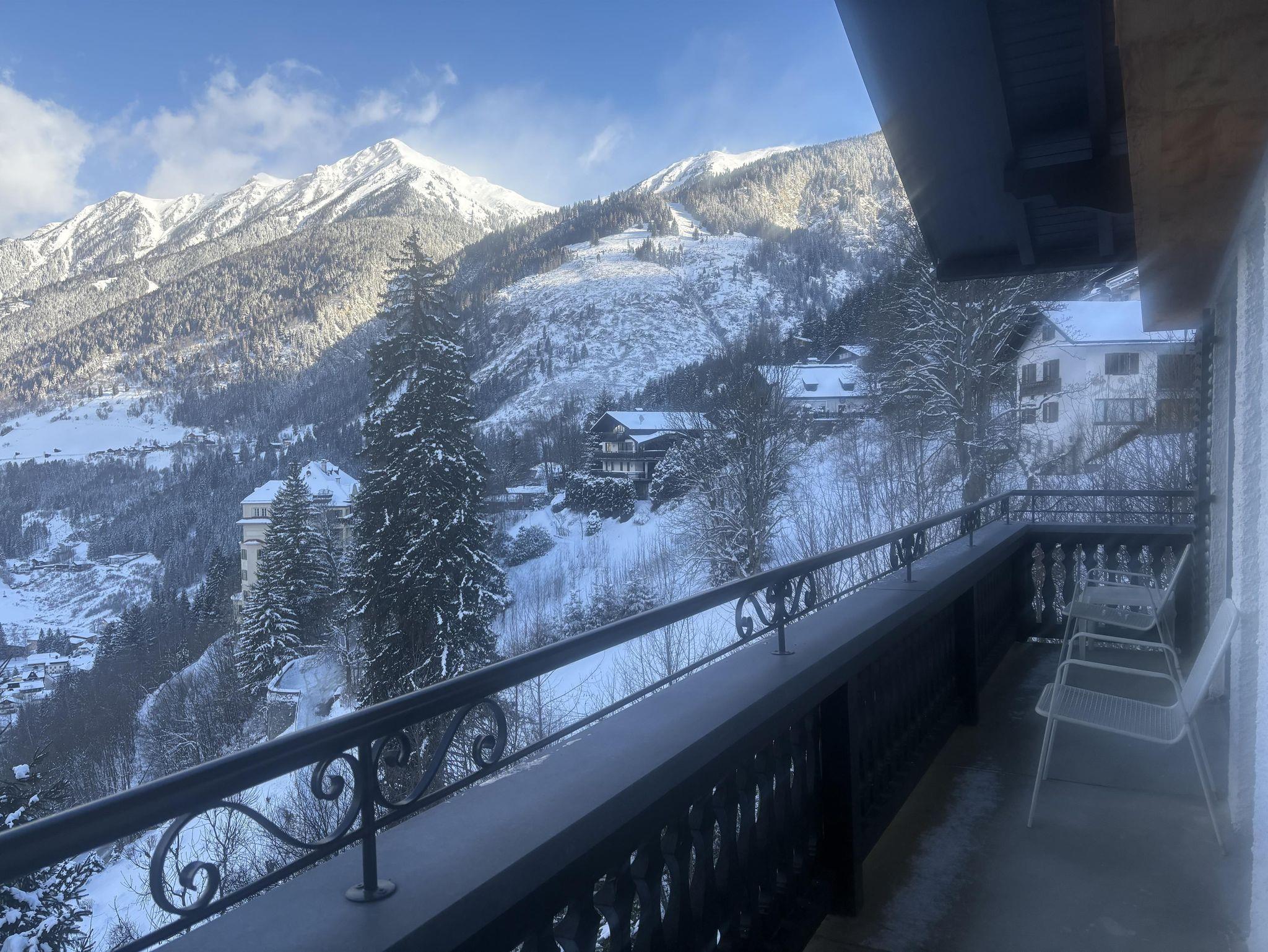 Um das Wohn- und Schlafzimmer verläuft der große überdachte Süd-West Balkon. Durch die ruhige Lage des Hauses kann man hier eine entspannte Zeit genießen und herrliche Bergluft schnubbern. Der Balkon ist mit Balkonmöbel ausgestattet. Das Appartement befindet sich im 1. OG.