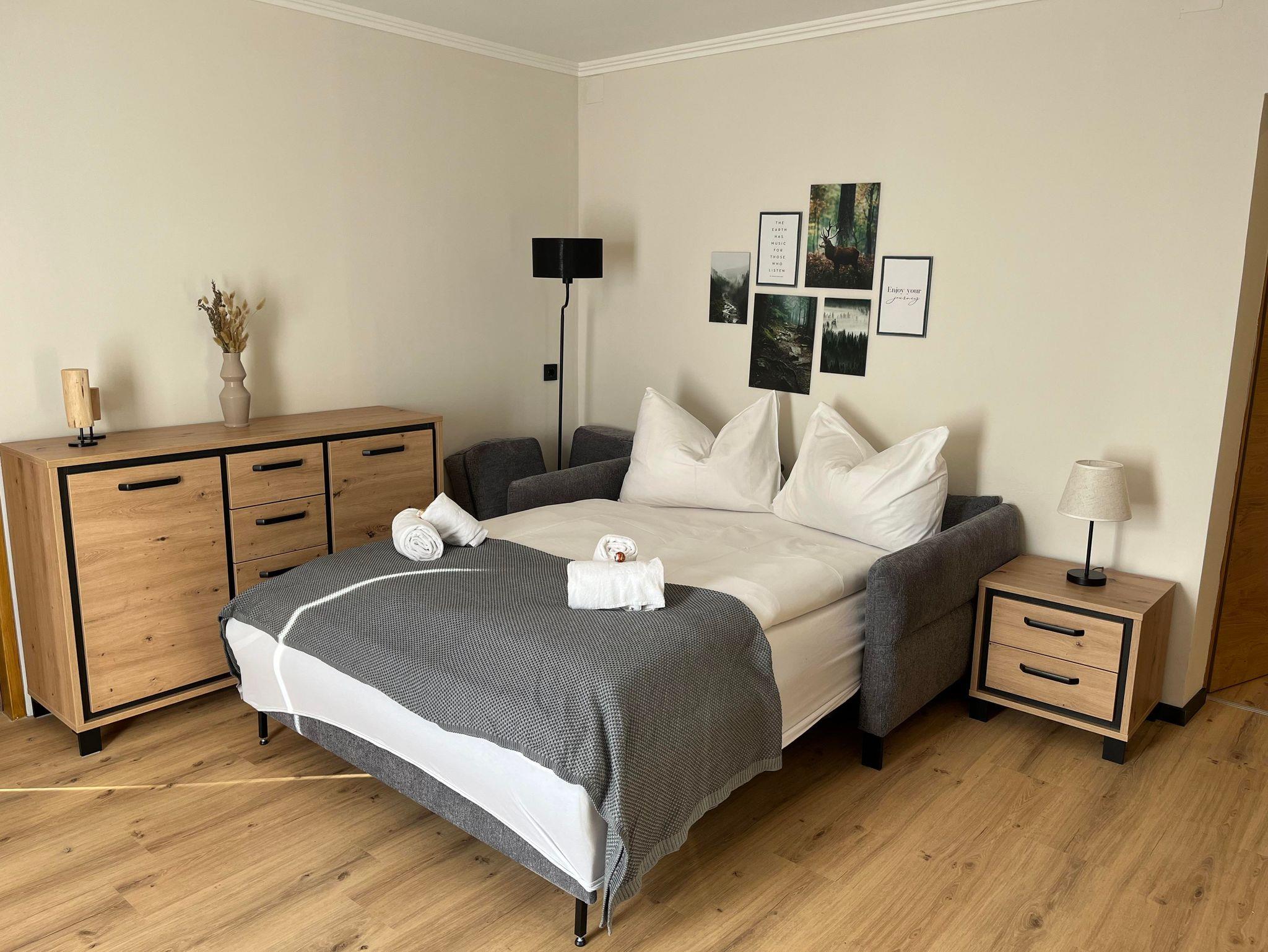 Unsere renovierten Appartements, ideal für Einzelreisende, Paare und Familien, bieten Platz für bis zu 6 Personen. Jedes Appartement verfügt über eine voll ausgestattete Küche, einen Essbereich, ein Bad mit Dusche/WC, Fernseher, WLAN (200 Mbit) und einen gemütlichen Wohnbereich. Entspannen Sie sich auf Ihrem privaten Balkon oder im Garten und genießen Sie die atemberaubende Aussicht. Zusätzlich stehen Ihnen kostenlose Parkplätze, ein Skikeller und einWaschraum mit Waschmaschine und Trockner zur Verfügung.