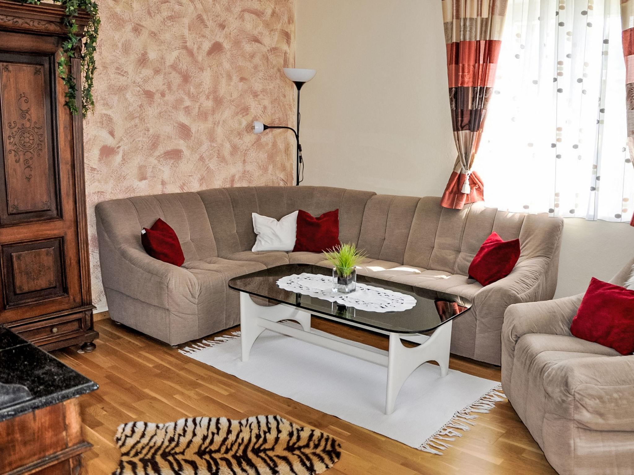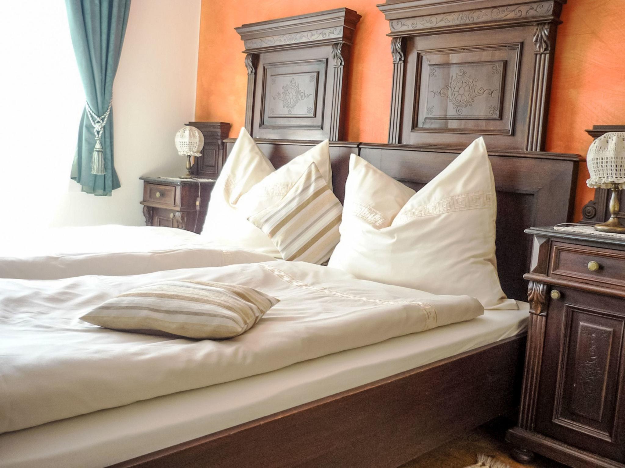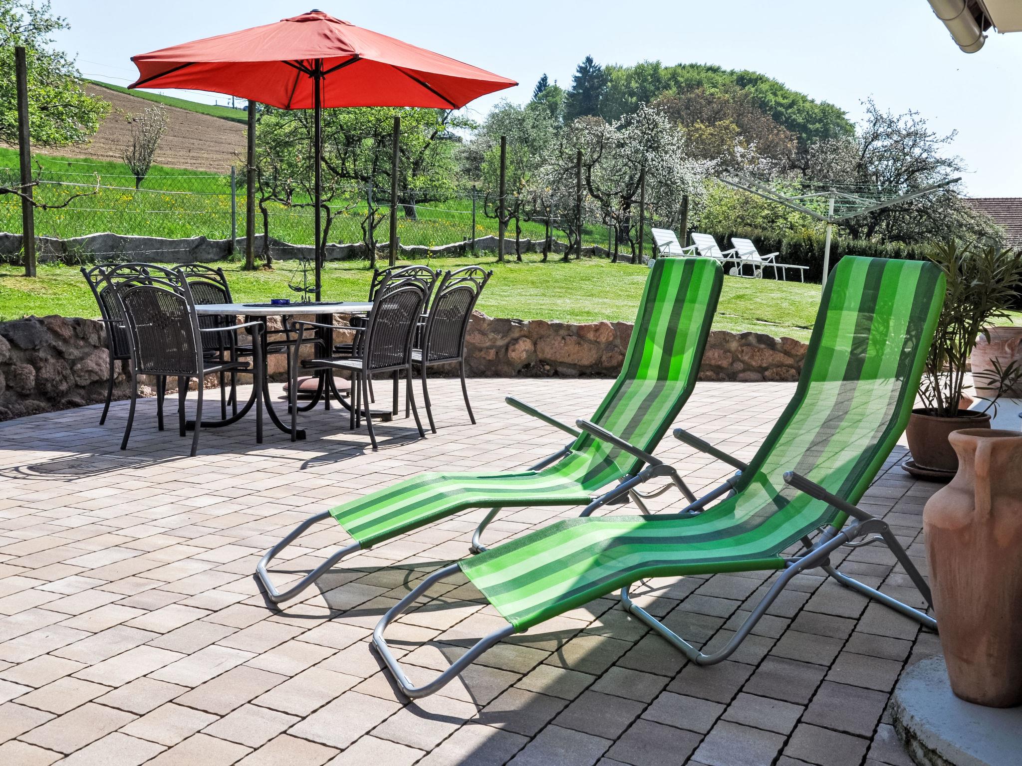 "Ferienhaus am Meißlberg", 3-room house 84 m2 on 2 levels. Stylish furnishings: living room with TV. 1 room with 1 double bed. Open kitchen (dishwasher, 4 ceramic glass hob hotplates, toaster, kettle, microwave, freezer, electric coffee machine) with dining table. Shower/WC. Oil heating, floor heating. Upper floor: 1 room with 1 bed and 1 double bed. Balcony 8 m2, terrace 16 m2. Terrace furniture, balcony furniture. Panoramic view. Facilities: washing machine. Internet (WiFi, free). Please note: non-smoking house. Smoke alarm, fire extinguisher. "Ferienhaus am Meißlberg", 4-room house 84 m2 on 2 levels. Stylish furnishings: living room with TV. 1 room with 1 double bed. This accommodation has three bedrooms: one bedroom on the ground floor with a double bed (length 190 cm), one single bedroom on the upper floor (bed length 200 cm) and one bedroom on the upper floor with a double bed, also 200 cm long. Open kitchen (dishwasher, 4 ceramic glass hob hotplates, toaster, kettle, microwave, freezer, electric coffee machine) with dining table. Shower/WC. Oil heating, floor heating. Upper floor: 1 room with 1 bed and 1 double bed. Balcony 8 m2, terrace 16 m2. Terrace furniture, balcony furniture. Panoramic view. Facilities: washing machine. Internet (WiFi, free). Please note: non-smoking house. Smoke alarm, fire extinguisher.