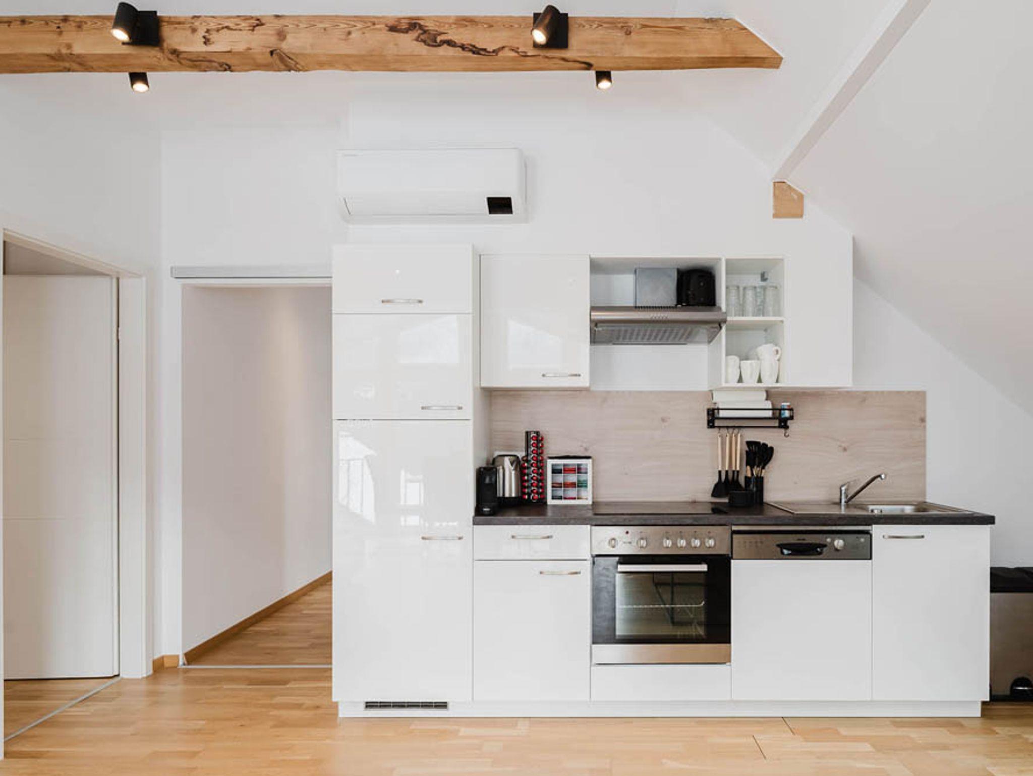 Das Apartment im Dachgeschoß verfügt über ein gemütliches Wohnzimmer mit vollausgestatteter, moderner Einbauküche und großzügiger Essgruppe, ein gefälliges Badezimmer mit Walk-In Dusche, Waschbecken und WC. Es gibt 2 geräumige Schlafzimmer. Die Bettenverteilung in den Schlafräumen ist individuell gestaltbar und wird für Ihre Bedürfnisse hergerichtet. Somit steht einem erholsamen Familienurlaub mit Kindern oder Freunden nichts mehr im Wege!
