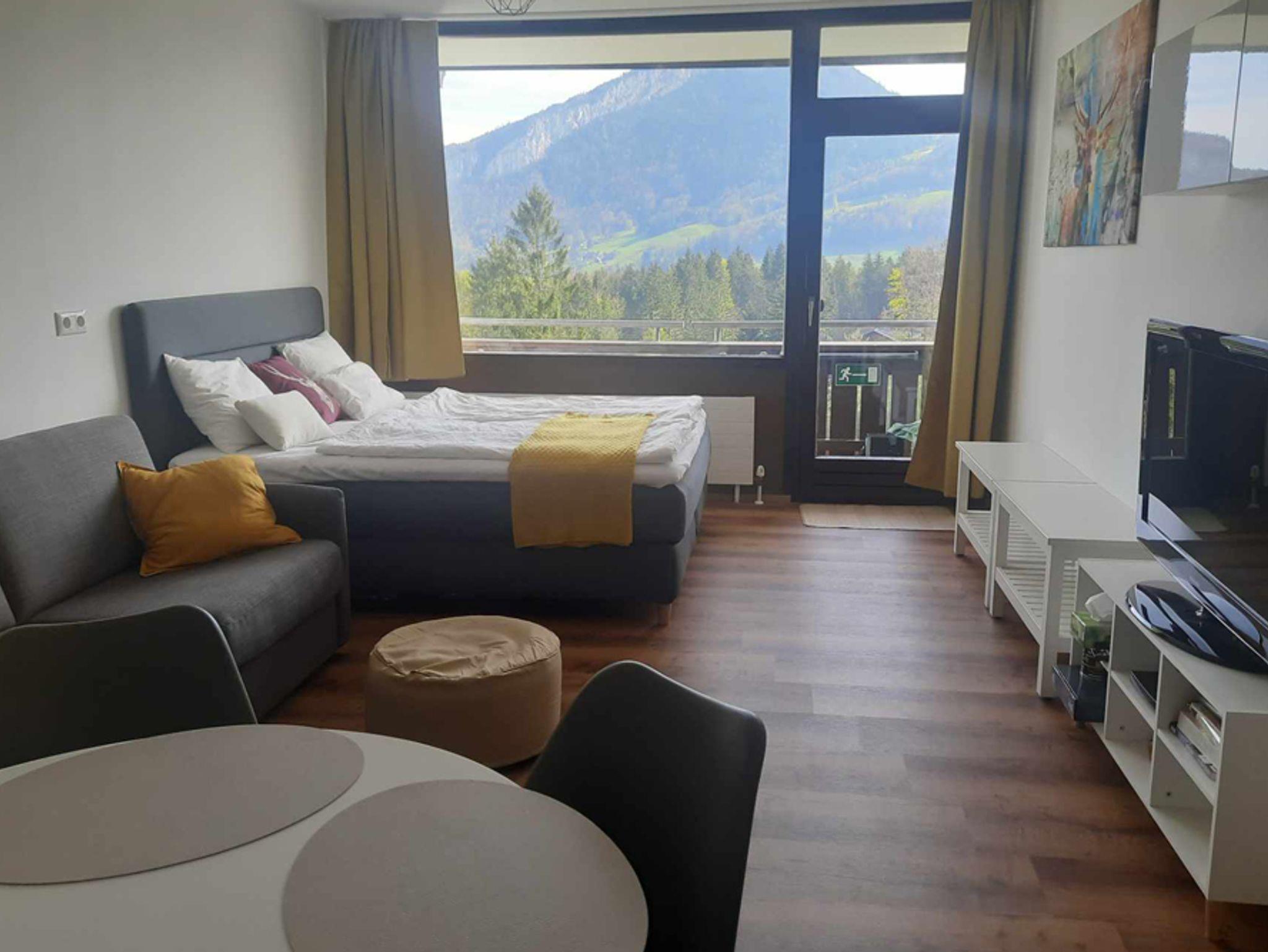 Treten Sie ein und lassen Sie sich von der gemütlichen Atmosphäre empfangen. Die Wohnung verfügt über einen geräumigen Balkon, der Ihnen eine atemberaubende Aussicht auf die majestätische Bergwelt von Bad Goisern bietet. Tauchen Sie ein in die unberührte Natur und genießen Sie den Anblick der umliegenden Gipfel, während Sie Ihren Morgenkaffee oder ein Glas Wein am Abend genießen.