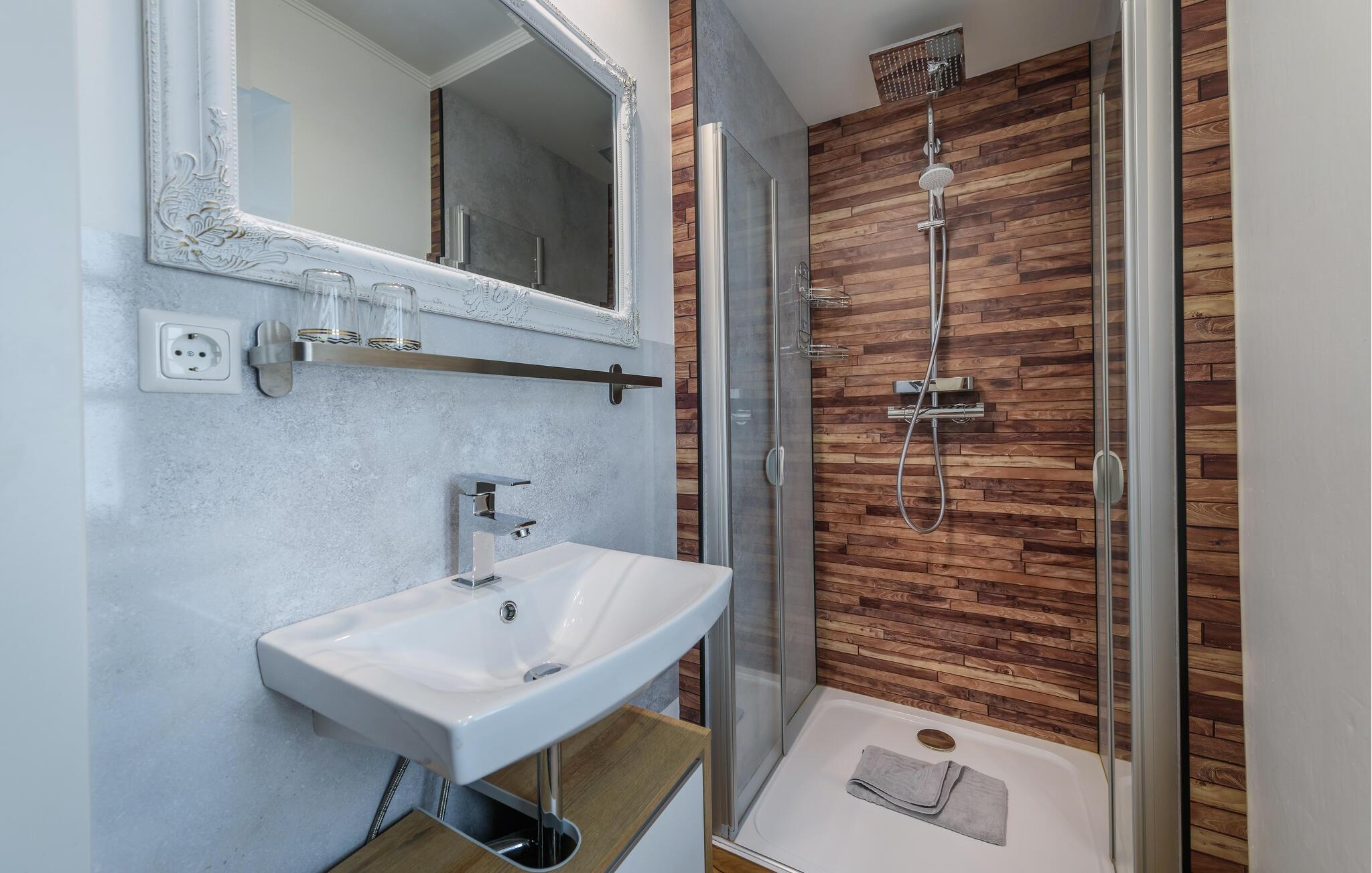 - WC med varmt og kaldt vann, Dusj