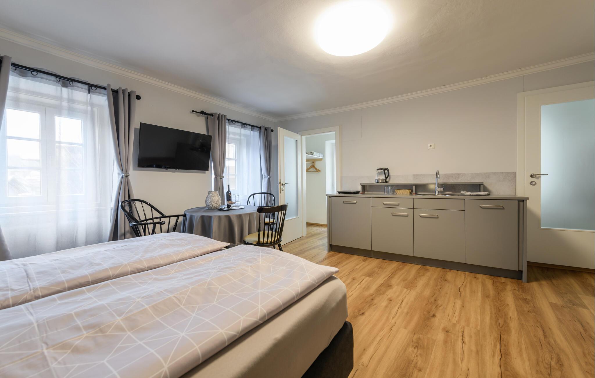 Gled deg til en stund ute i denne koselige og praktisk innredede leiligheten. Ta en pause fra hverdagen og slapp av her. Nyt en kopp fersk kaffe om morgenen og lag deg en deilig frokost. Lytt til favorittmusikken din eller fordyp deg i en god bok. Om kvelden kan dere tilberede måltidene sammen og slappe av på slutten av dagen.