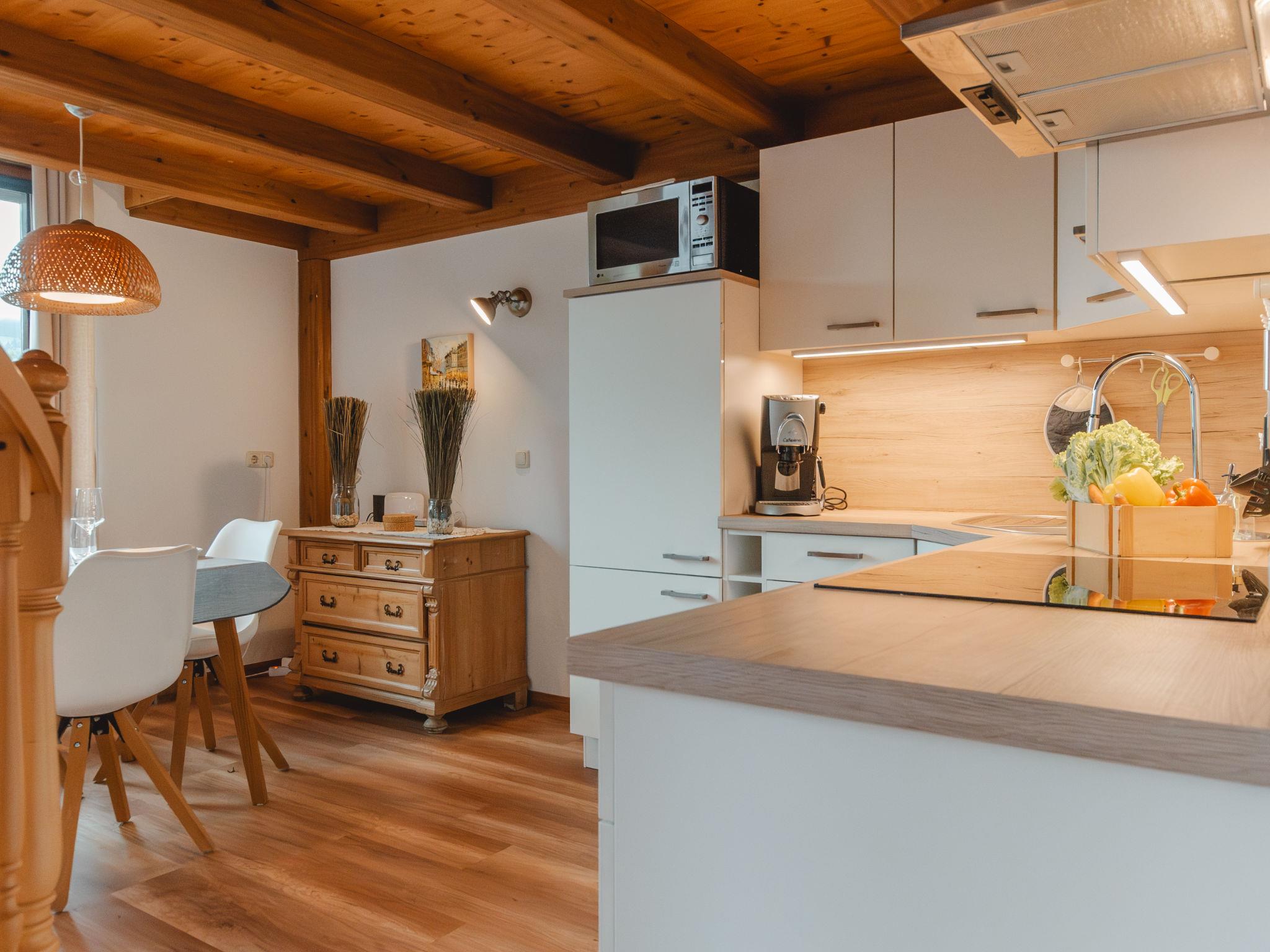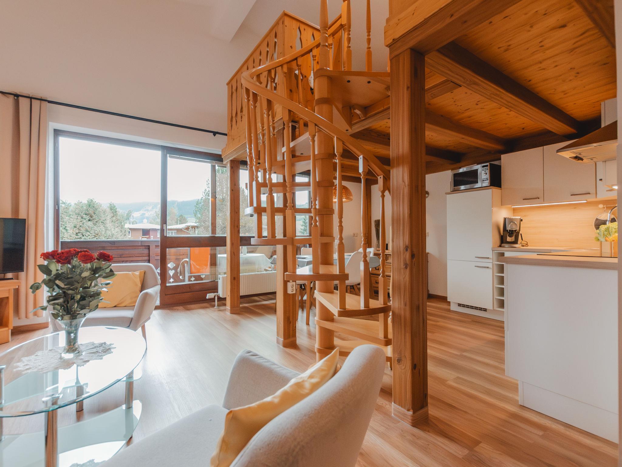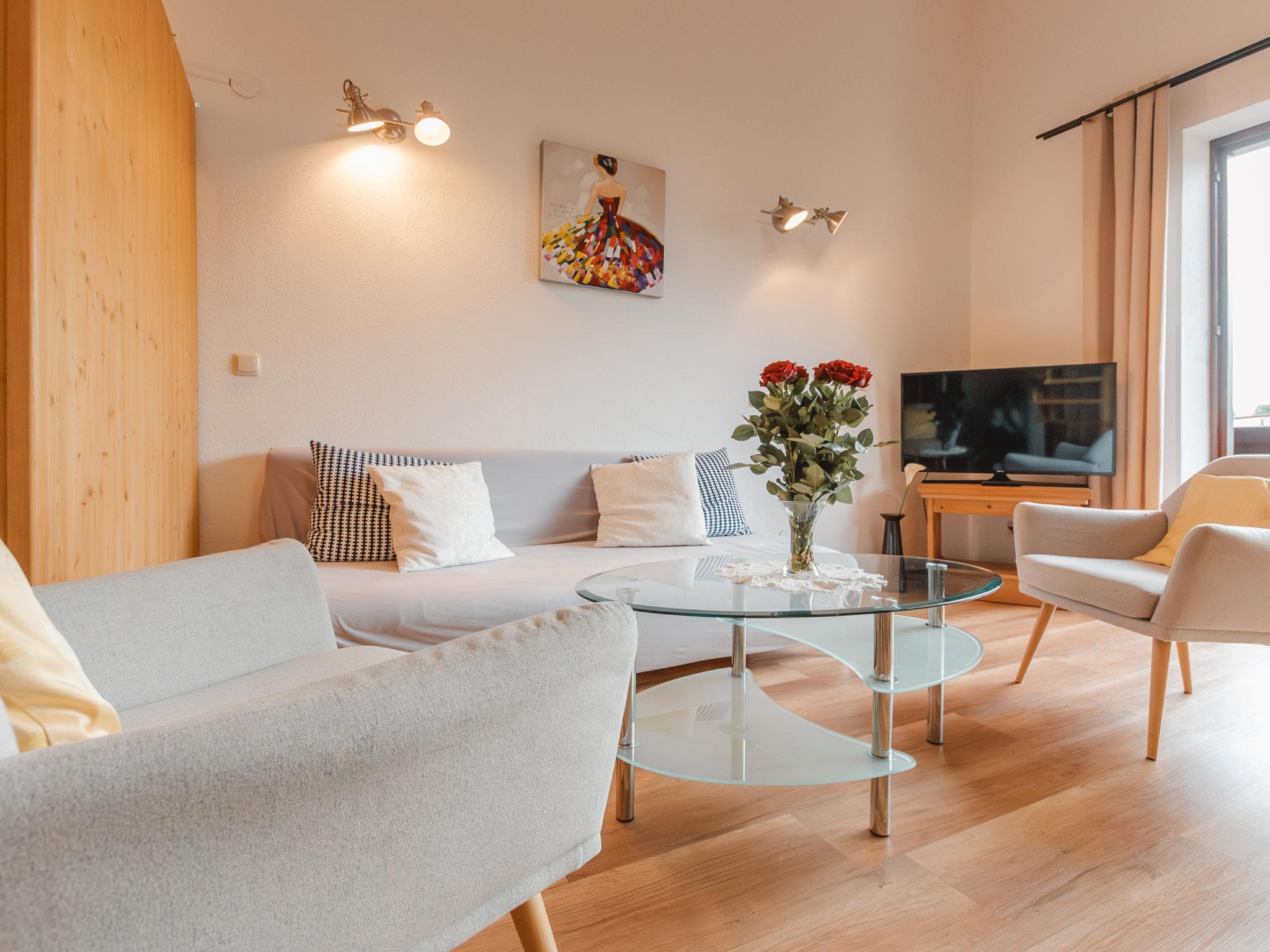 "Anna-Katharina", 1-room apartment 53 m2 on 2nd floor. Object suitable for 2 adults + 2 children. Spacious and bright, very modern and cosy furnishings: entrance hall. Open gallery 17 m2 with 1 double bed. Living/dining room 36 m2 with panoramic window with 1 double sofabed, dining table and cable TV (flat screen). Exit to the balcony. Open kitchen (oven, dishwasher, 4 ceramic glass hob hotplates, toaster, kettle, microwave, electric coffee machine). Shower, sep. WC. Wooden floors. Balcony 10 m2. Balcony furniture. Very beautiful panoramic view of the mountains. Facilities: hair dryer. Internet (WiFi, free). Parking space n 7. Please note: suitable for families. Non-smokers only. Smoke alarm, no lift. The electric coffee machine is a Cafissimo. Instead of an enclosed bedroom, some sleeping areas are located in an open-plan area (gallery, alcove, etc.). 50402-000674-2020