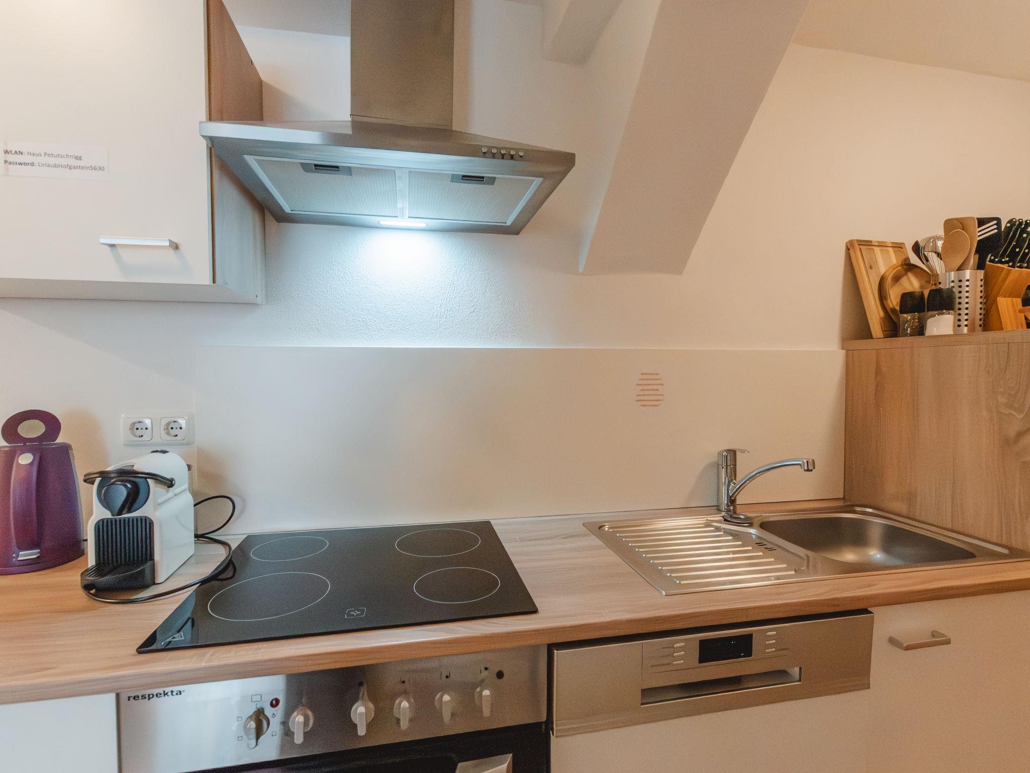 "Sattlerweg", 2-room apartment 50 m2, on the ground floor. Object suitable for 3 adults. Modern furnishings: entrance hall. 1 double bedroom. Living/sleeping room with 1 sofabed (130 cm, length 190 cm), dining table and satellite TV (flat screen), radio. Exit to the terrace. Open kitchen (oven, dishwasher, 4 ceramic glass hob hotplates, toaster, kettle, freezer, electric coffee machine, Capsules for coffee machine (Nespresso)). Shower/WC. Small terrace. Terrace furniture. View of the resort. Facilities: Internet (WiFi, free). Please note: non-smokers only. Smoke alarm. 50402-000629-2020