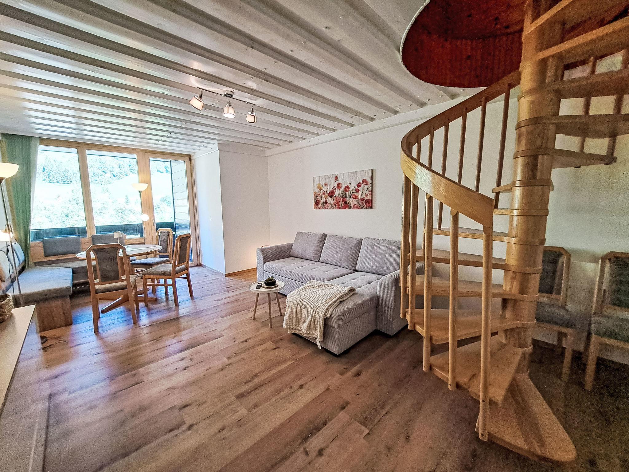 "Morgensonne", 4-room maisonette 64 m2. Spacious and bright, renovated in 2025, comfortable and tasteful furnishings: entrance hall. Living/dining room with 1 sofabed. Exit to the balcony. Small kitchen (oven, dishwasher, 4 ceramic glass hob hotplates, toaster, kettle, electric coffee machine). Bath/WC. Upper floor: (spiral staircase), 3 double bedrooms with rooflight. Shower/WC. Parquet floors. Very beautiful panoramic view of the mountains. Facilities: hair dryer. Please note: suitable for families. Non-smokers only. 50402-000850-2025