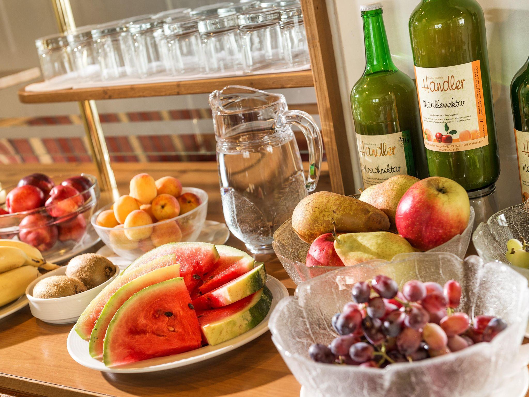 Starten Sie Ihren Tag mit einem reichhaltigen Frühstücksbuffet im Hotel Alpenhof, Bad Hofgastein. Genießen Sie frische süße und herzhafte Speisen. Vegane und glutenfreie Optionen sind auf Anfrage verfügbar. Das Frühstück ist im Apartment nicht inbegriffen.