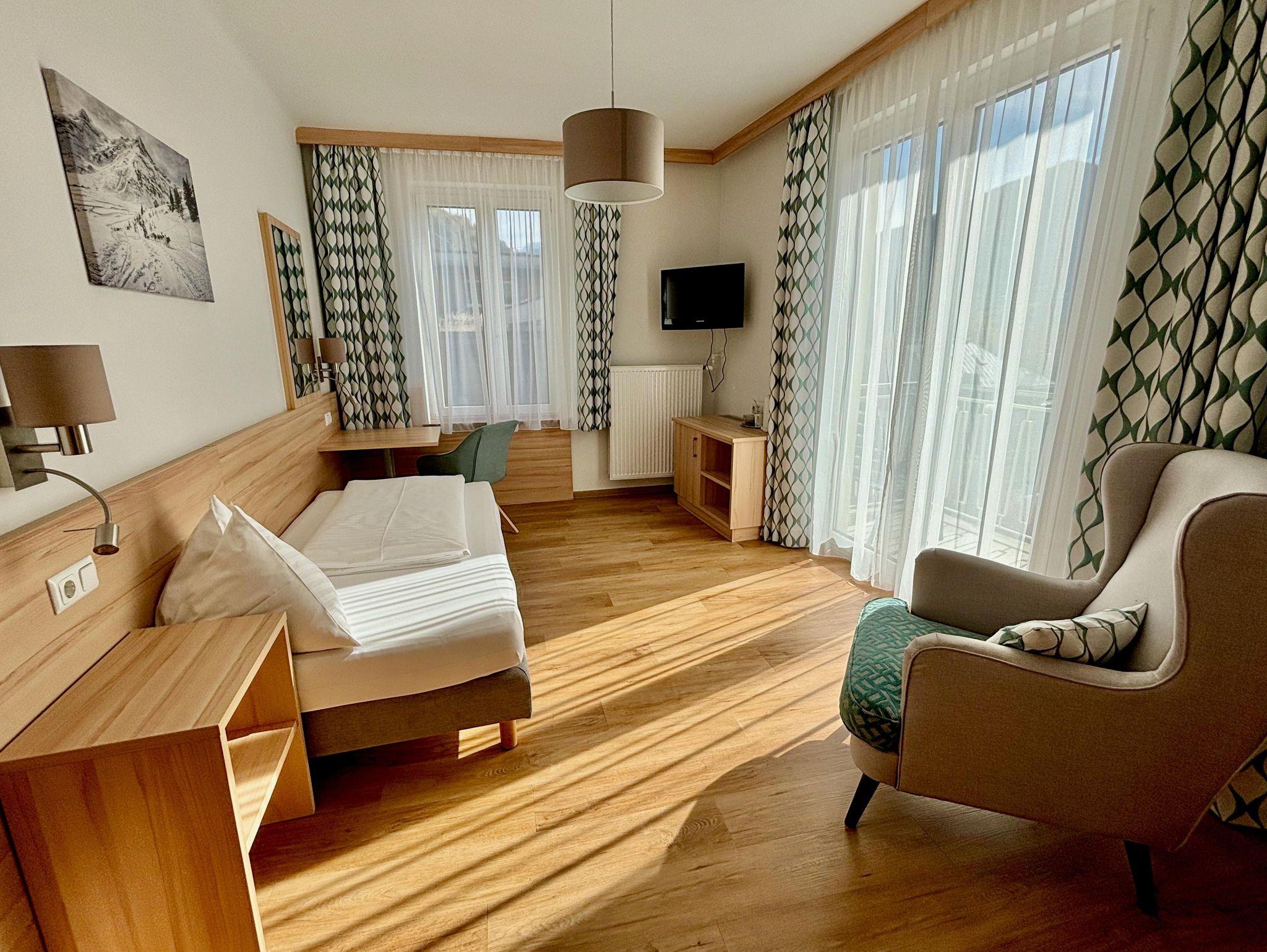 Unser Basic Einzelzimmer ist ideal für Alleinreisende, die einen komfortablen Aufenthalt suchen. Es bietet ein gemütliches Einzelbett und ein eigenes Bad mit Dusche oder Badewanne. Genießen Sie die Aussicht auf die Berge oder nutzen Sie den Arbeitsbereich im Zimmer, um produktiv zu bleiben. Buchen Sie jetzt Ihr Basic Einzelzimmer und erleben Sie einen angenehmen Aufenthalt in Bad Hofgastein.