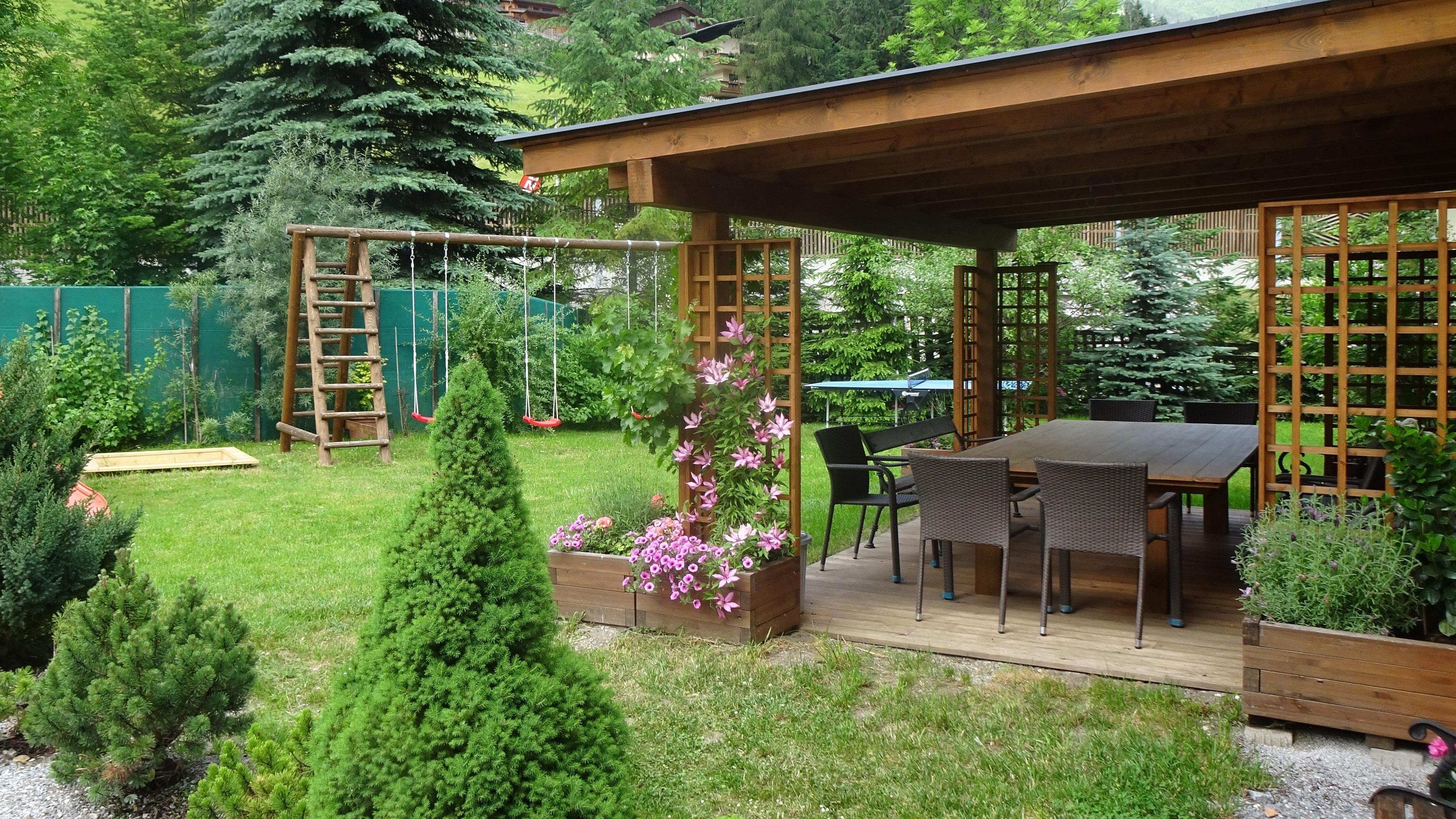 Unser großzügiger Garten mit zwei Pavillons und kleinem Spielplatz lädt wunderbar zum Entspannen ein.