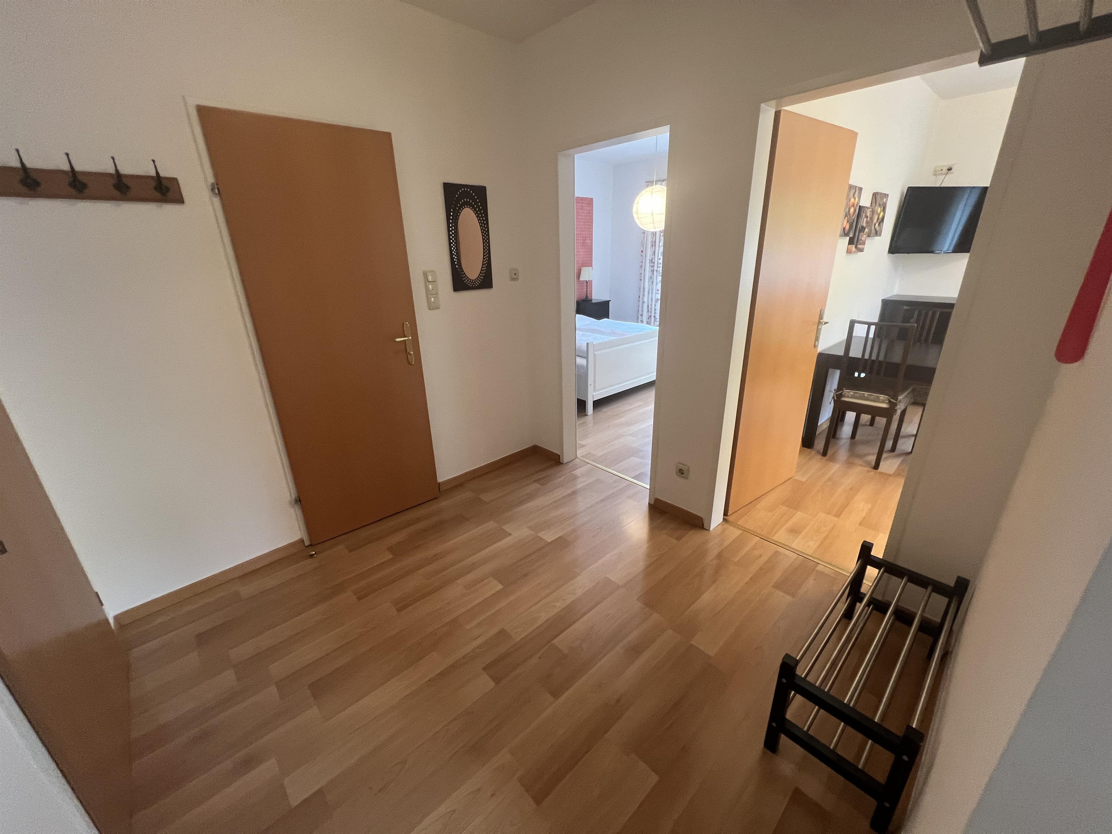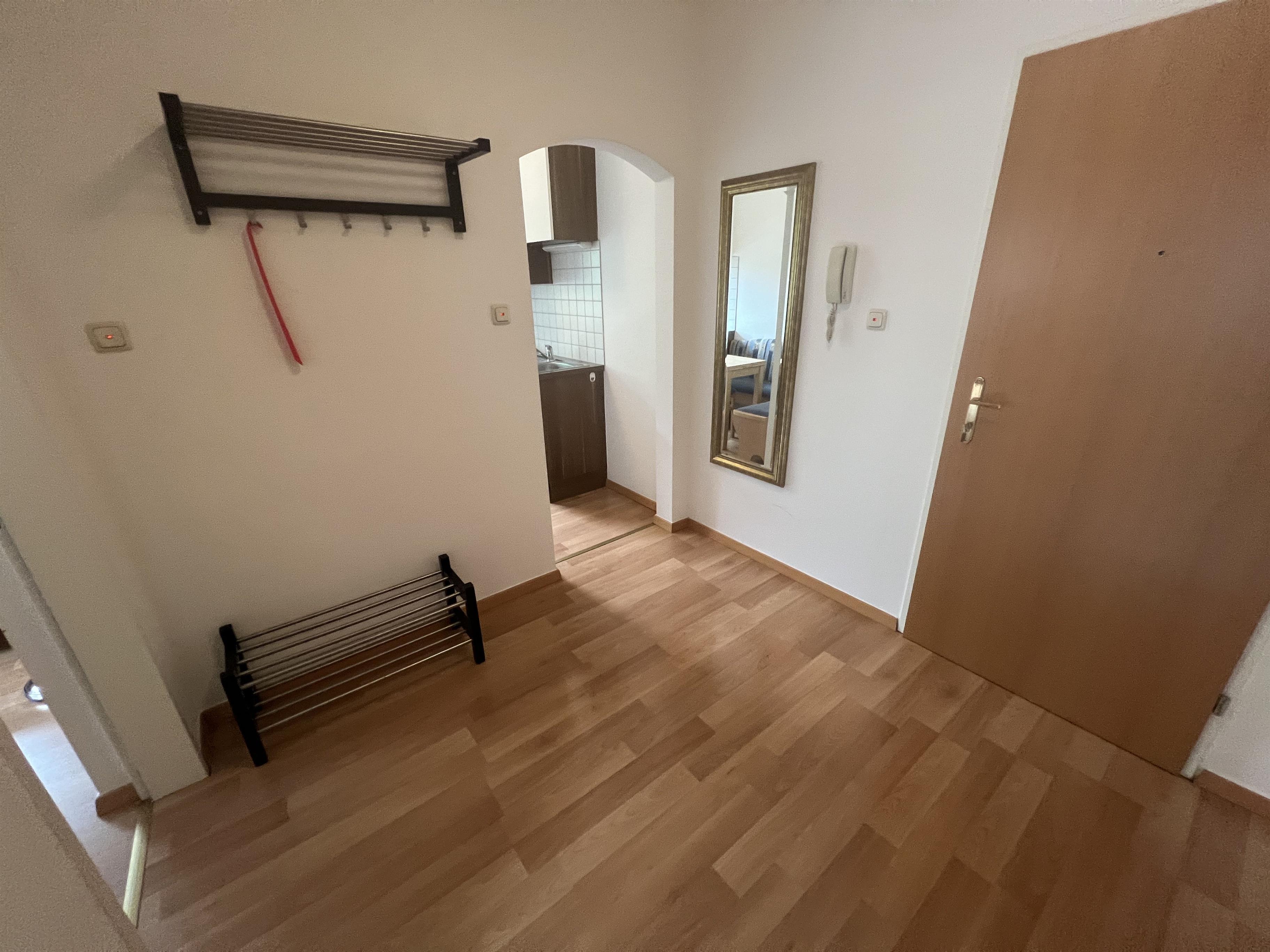 Das Apartment besteht aus einer Küche, einem Wohn/Schlafraum mit ausziehbarer Doppelcouch, einem Schlafraum mit einem Doppelbett, Vorraum, Dusche/WC und Balkon, und einer kleinen Küche.