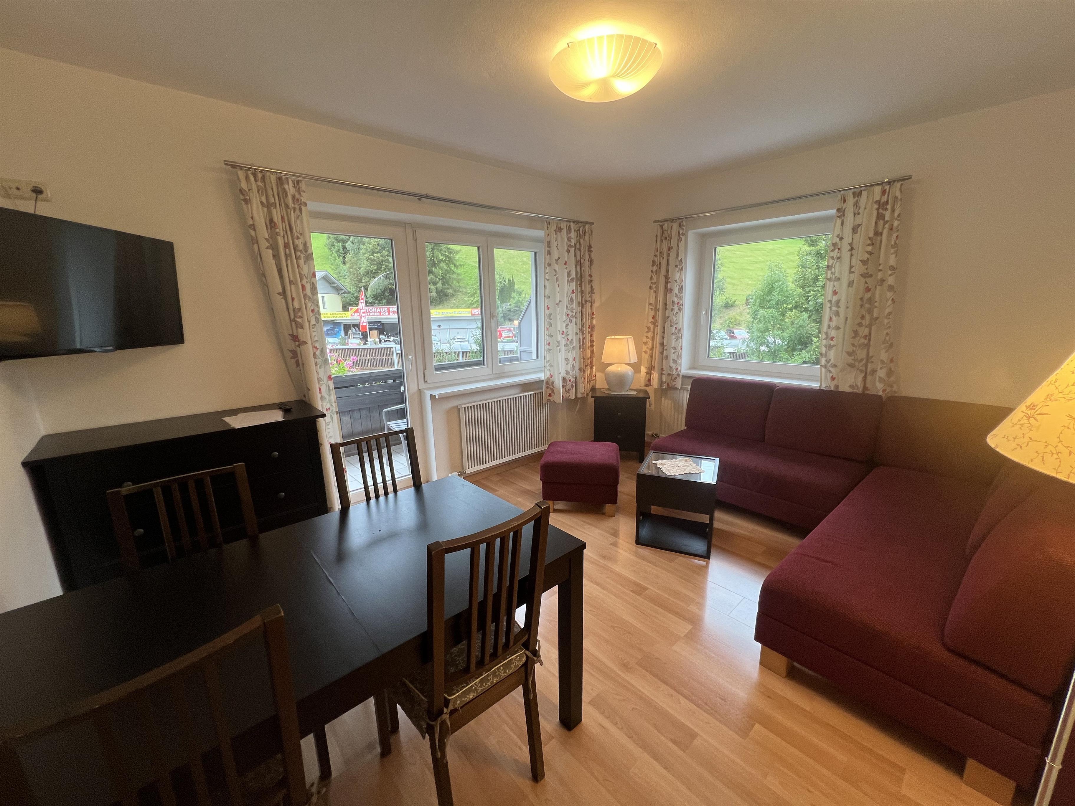Das Appartement ist gemütlich eingerichtet. Die Wohnung verfügt über einen eigenen Balkon mit atemberaubender Aussicht auf die Gasteiner Berge.