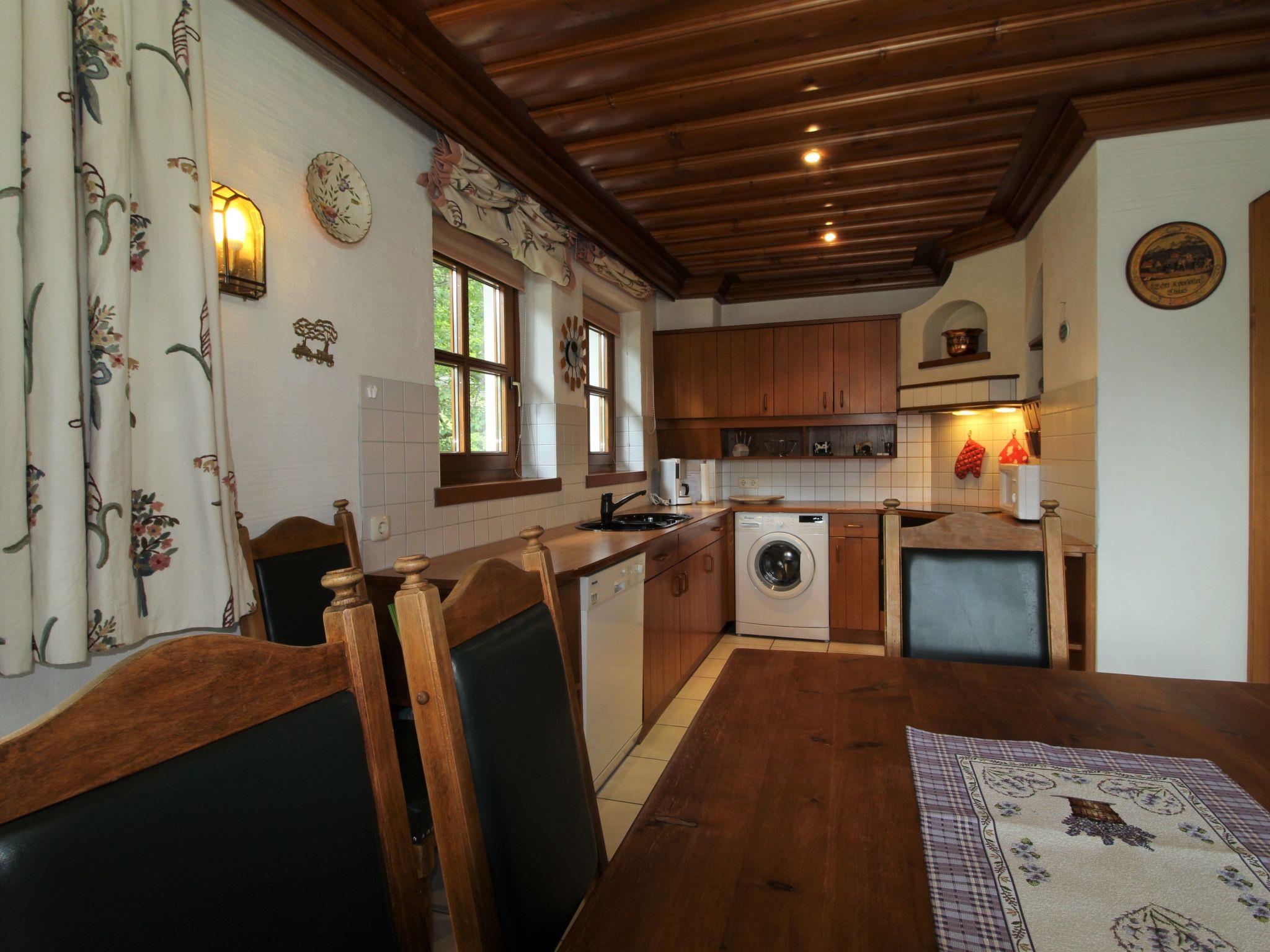 Our chalet presents itself with an inviting interior that leaves nothing to be desired. A spacious and cosy living room with an open kitchen, equipped with a tiled stove, a black leather lounge and a TV, invites you to linger. The accommodation also has two double bedrooms, one of which has a bunk bed for 3 people, a single bedroom and a total of three sanitary facilities - two bathrooms plus a separate WC. A washing machine and dishwasher are also available to make your stay as comfortable as possible.