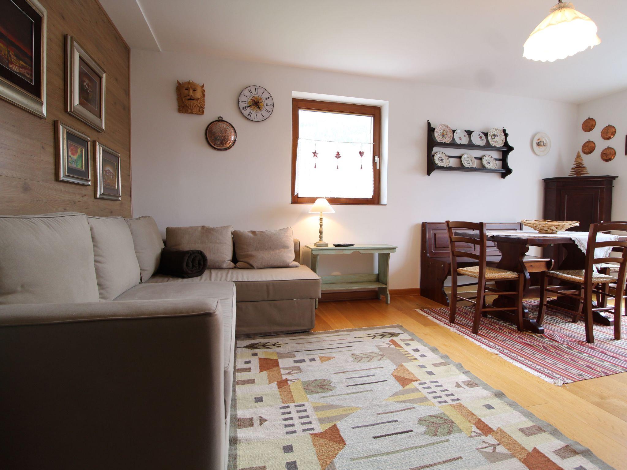 Outside, the possibility of using a ski room invites you to enjoy uncomplicated skiing days. The special location of this flat allows you to enjoy both the surrounding natural wonders and the infrastructural amenities of the village within minutes.