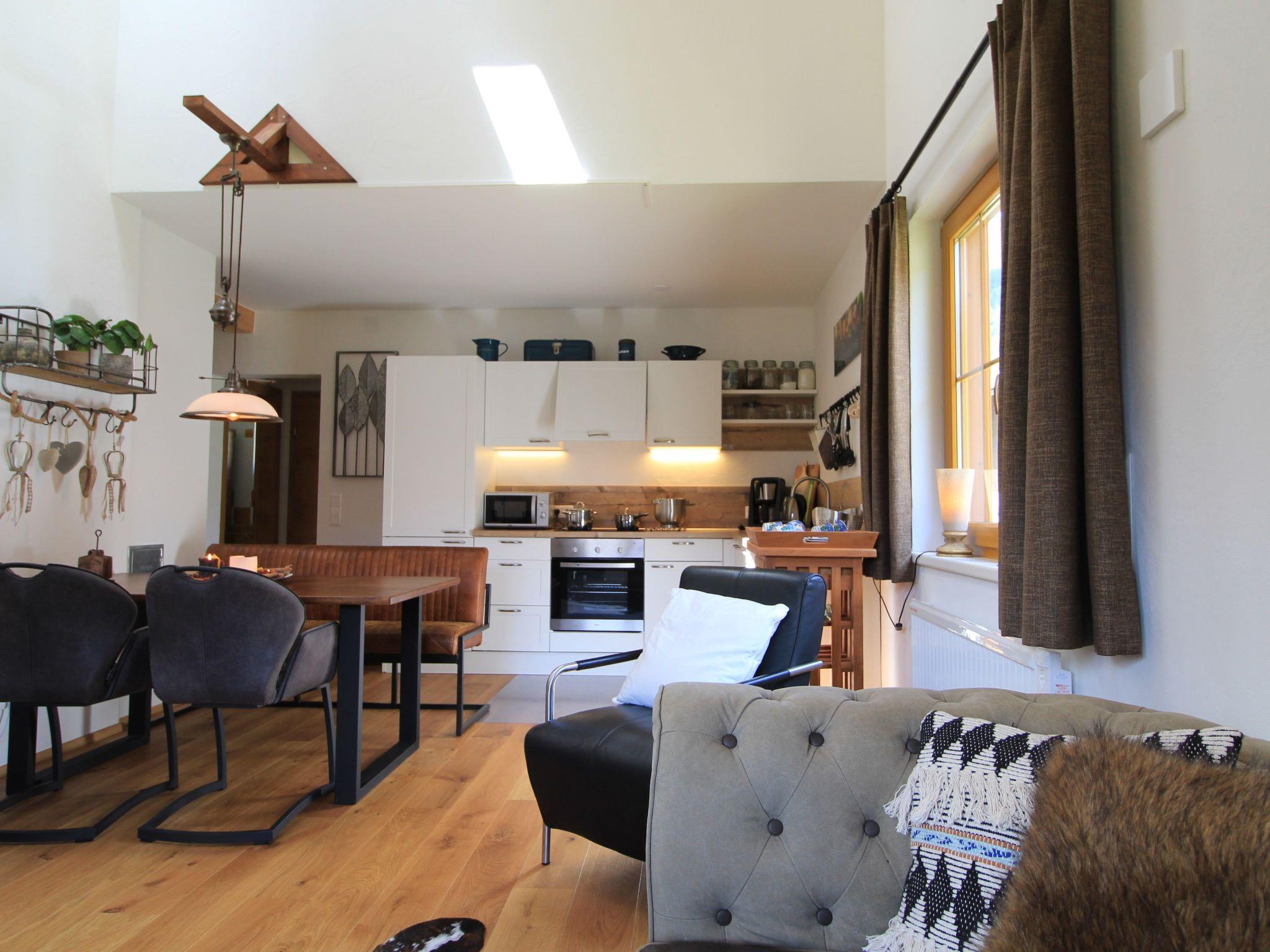 Welcome to our newly furnished flat on the first floor, ideally located just 50 metres from the ski slopes. This modern accommodation offers everything you need to relax in comfort after a long day on the slopes. With two double bedrooms, a spacious living room with kitchenette and a terrace that invites you to linger, it is the ideal accommodation for families or friends. In addition, the close proximity to the Sankt Kathrein thermal spa and local amenities such as a pizzeria and a bakery ensure that your holiday wishes are fulfilled.