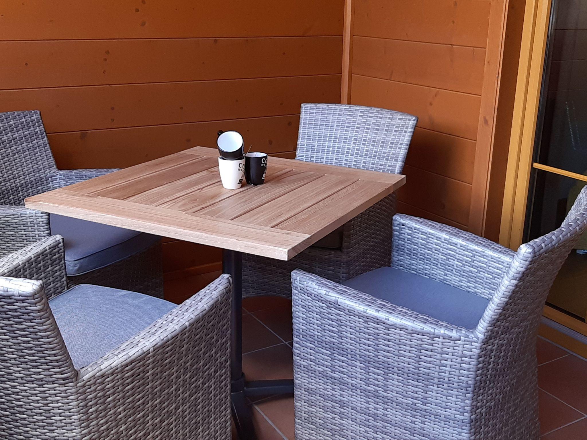 The outdoor area of the flat is characterised by a charming terrace furnished with a table and chairs - an ideal place to enjoy the view or end the day with a glass of wine. For guests arriving by car, two private outdoor parking spaces are available directly at the entrance. A shared ski room also offers plenty of space for your winter sports equipment.