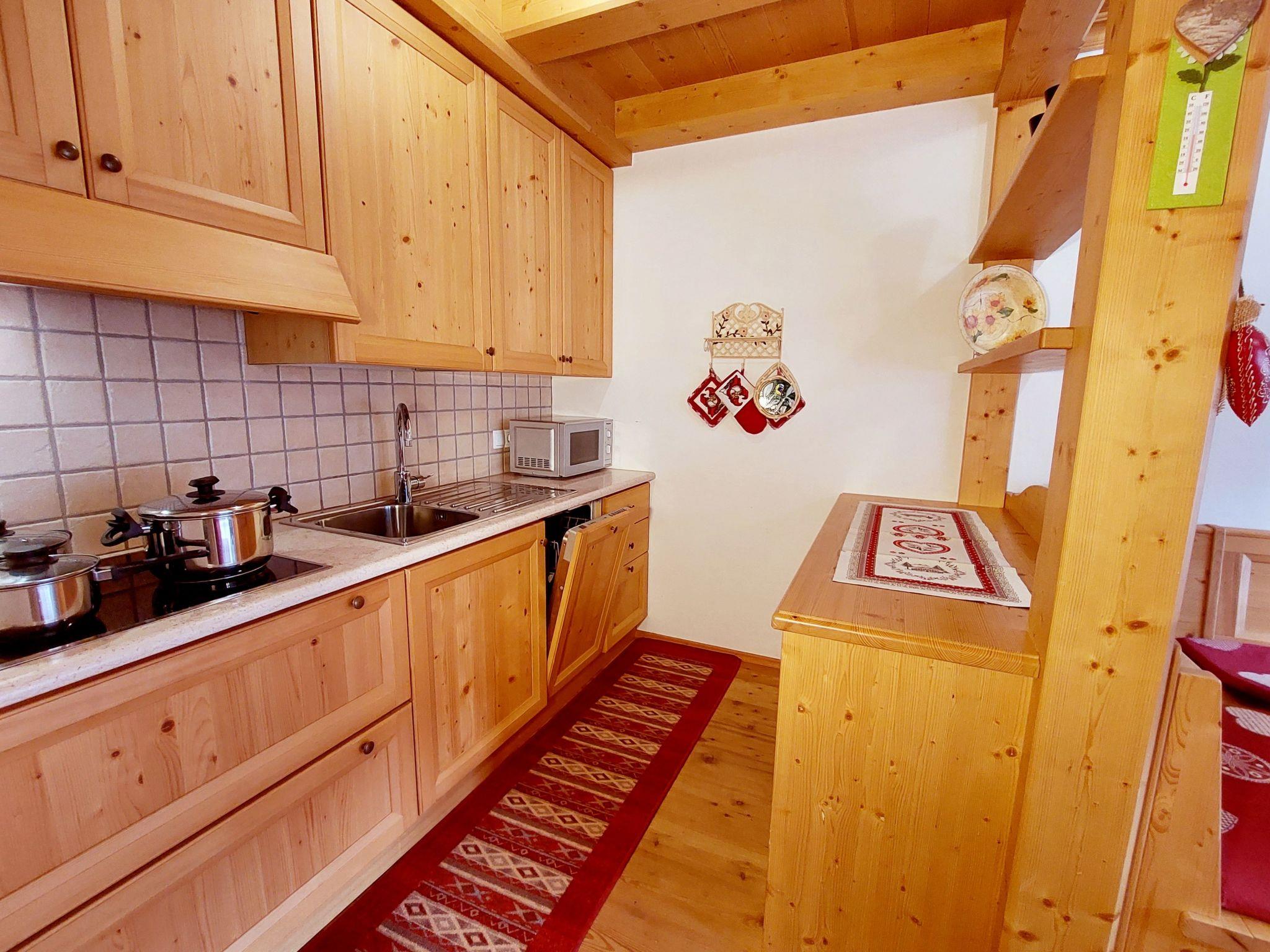 Inside, guests will find a fully equipped kitchen with dishwasher, microwave and "Dolcegusto" coffee machine, ideal for self-catering. The sunny living room has a sofa bed, while the bedroom has a cosy double bed and a practical bunk bed for children. The interior is completed by a bathroom with shower, bidet, washing machine and a small ski room to conveniently store your equipment.