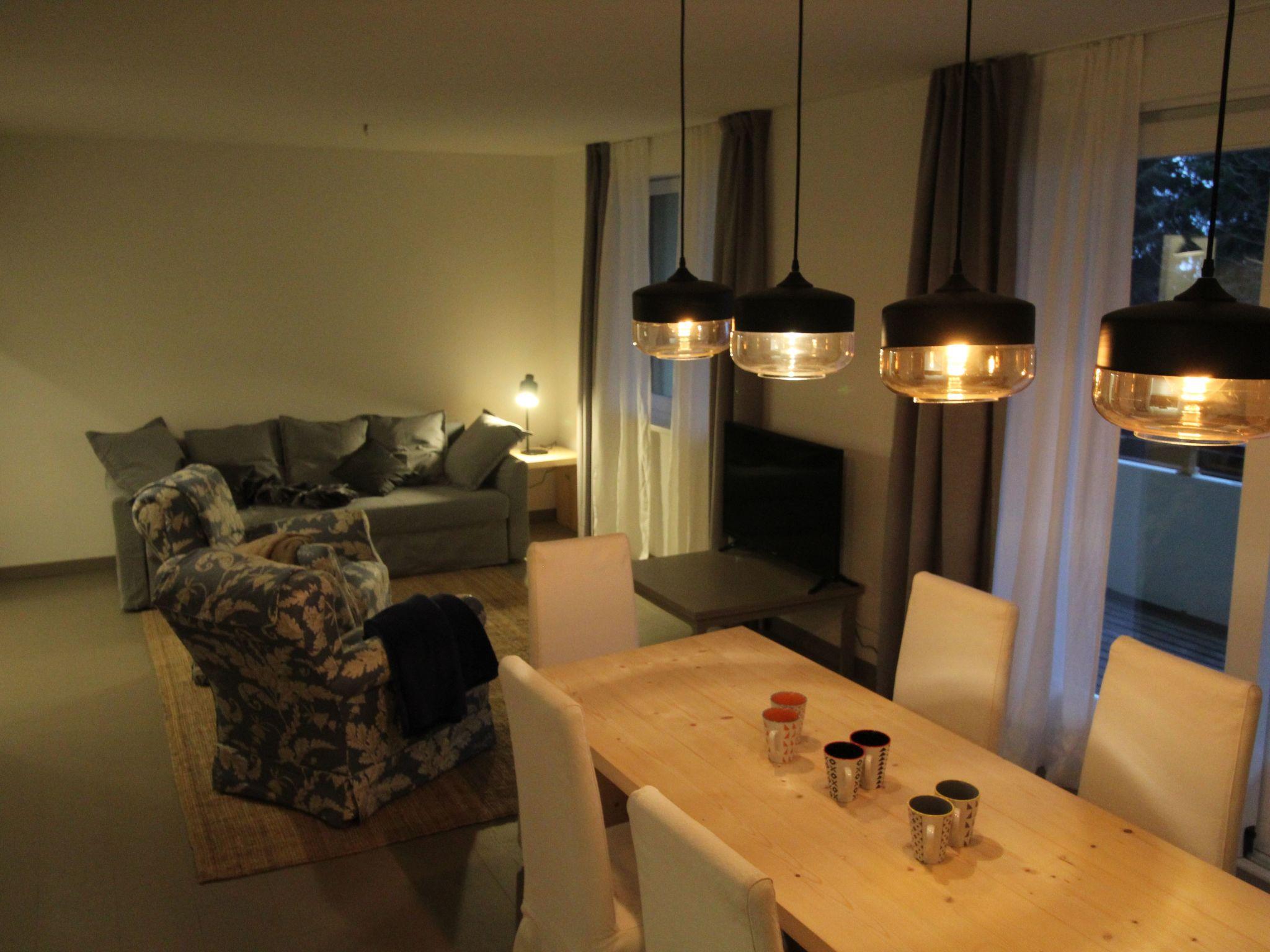 The flat impresses with its bright and spacious interior with a size of about 120 square metres and is located in the district of Zirkitzen in a particularly scenic area. With a large living room, an excellently equipped and functional kitchen, a large dining area with a cosy sofa/bed and armchairs as well as a centrally located TV, it offers every comfort. The accommodation has a bedroom with a double bed, a room with two single beds, another with bunk beds, two bathrooms and a chic terrace. There is also a practical ski room in the residence to make your stay even more comfortable.