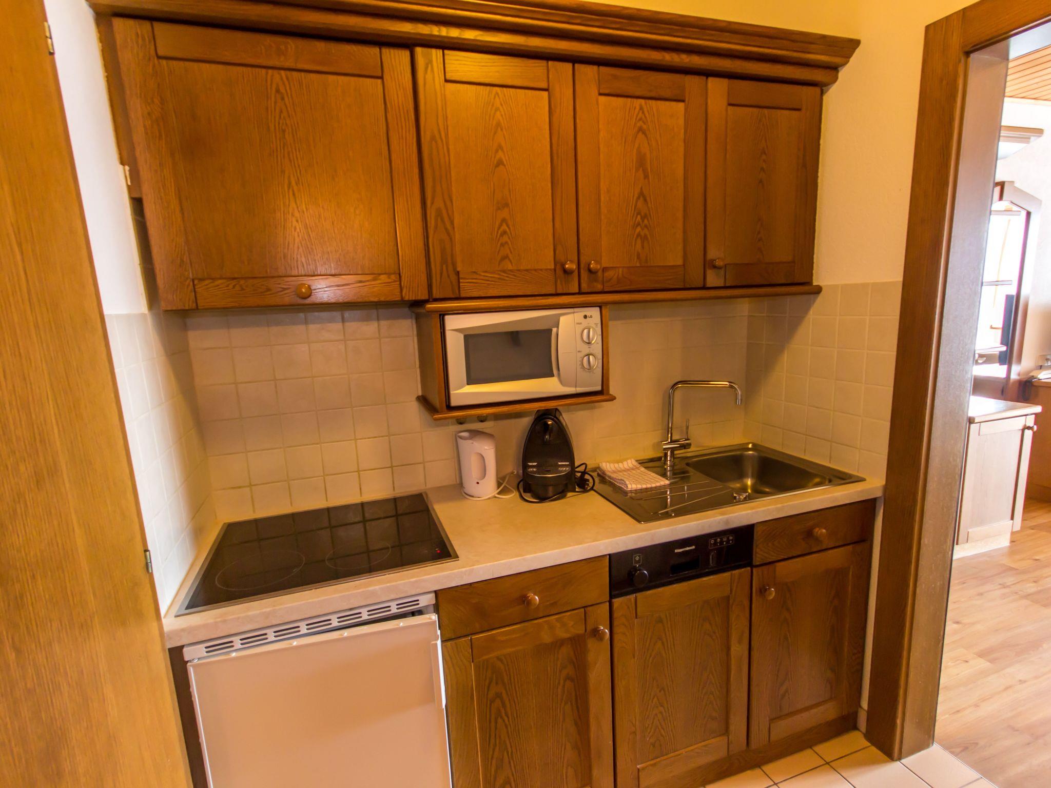 Inside, you will find well thought-out furnishings that leave nothing to be desired. The shared living room and bedroom have a comfortable double bed and a practical sofa bed that provides additional sleeping space. The private kitchen is well equipped with modern amenities such as a cooker, microwave, dishwasher, capsule coffee machine, kettle, crockery, glasses and cutlery. Depending on availability, the bathroom offers a bathtub or shower, some even with a double washbasin, guaranteeing a pleasant start to the day.