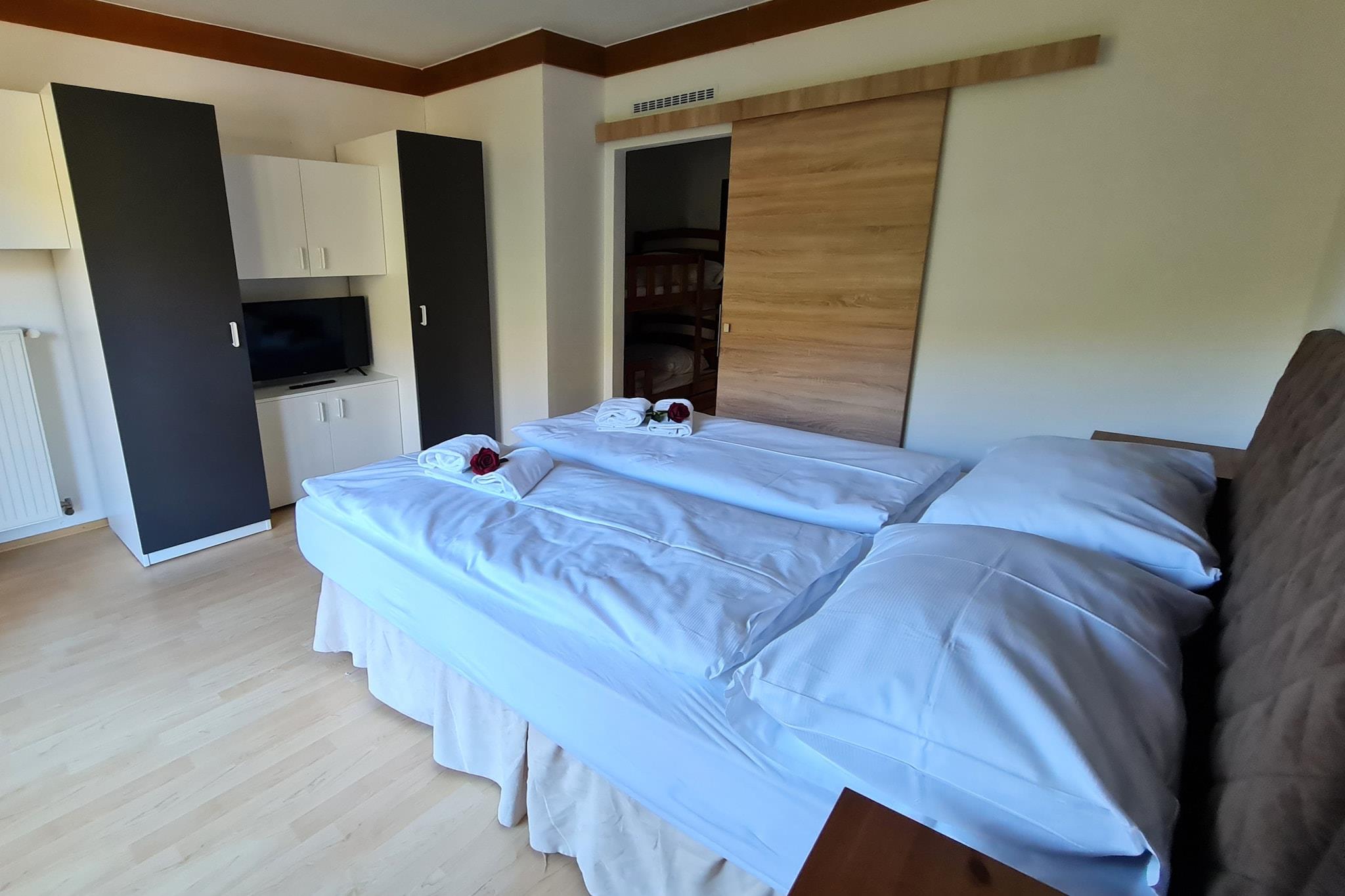 Stue(1 persons sovesofa), Kjøkken, soveværelse(køyeseng), soveværelse(dobbeltseng), bad(dusj), bad(dusj), Internett-tilgang, vannkoker, kaffetrakter, stekovn, mikrobølgeovn, oppvaskmaskin, kjøleskap, fryser, balkon, parkering, Hårtørker, Juicemaskin,